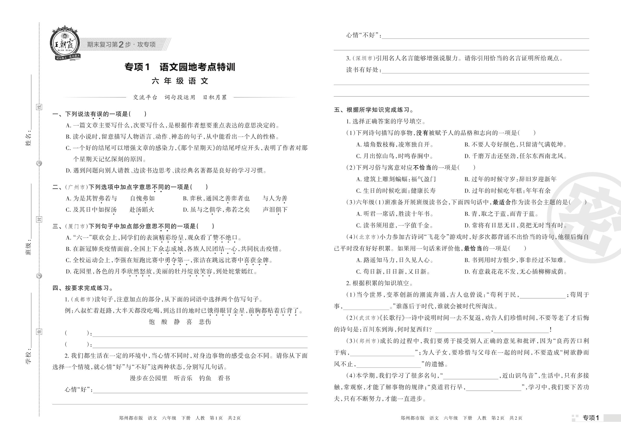 王朝霞期末专项卷——语文园地考点特训六年级下册语文(人教版)_R220331142957835【1】