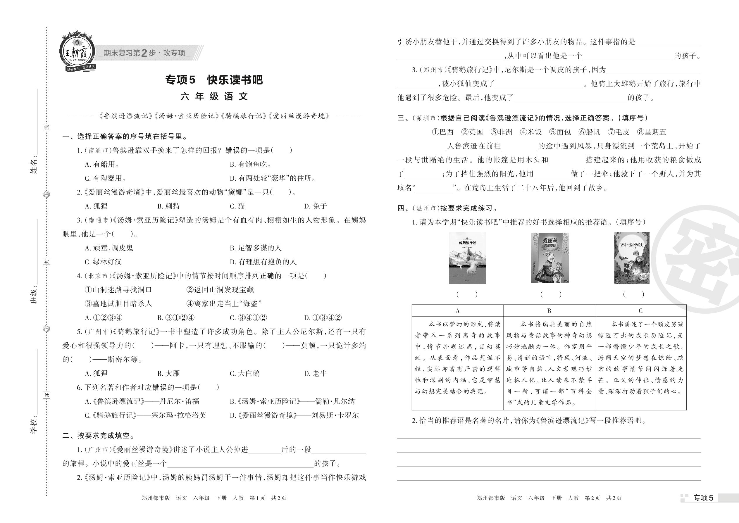 王朝霞期末专项卷——快乐读书吧六年级下册语文(人教版)_R220331142958383【5】