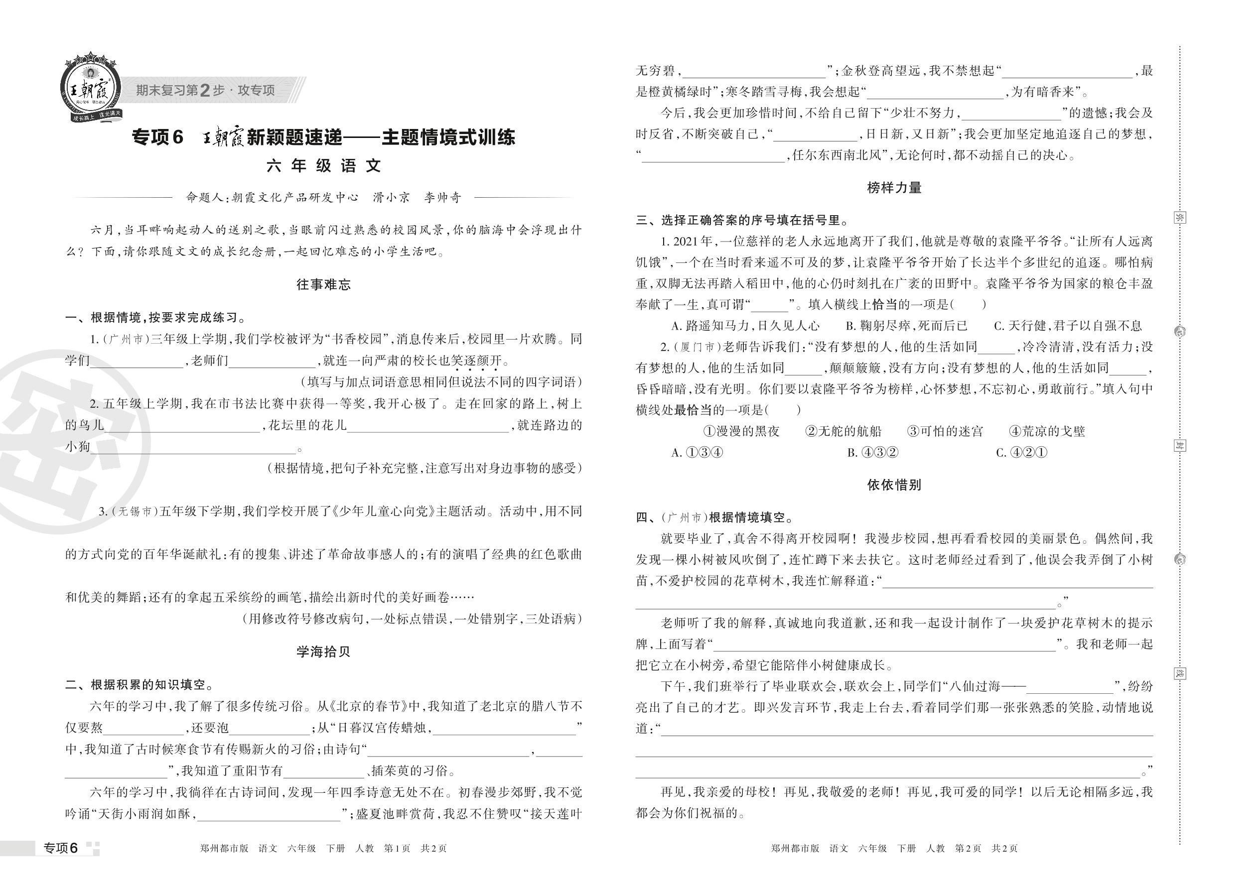王朝霞期末专项卷——新颖题速递:主题情境式训练六年级下册语文(人教版)_R220331142958169【6】