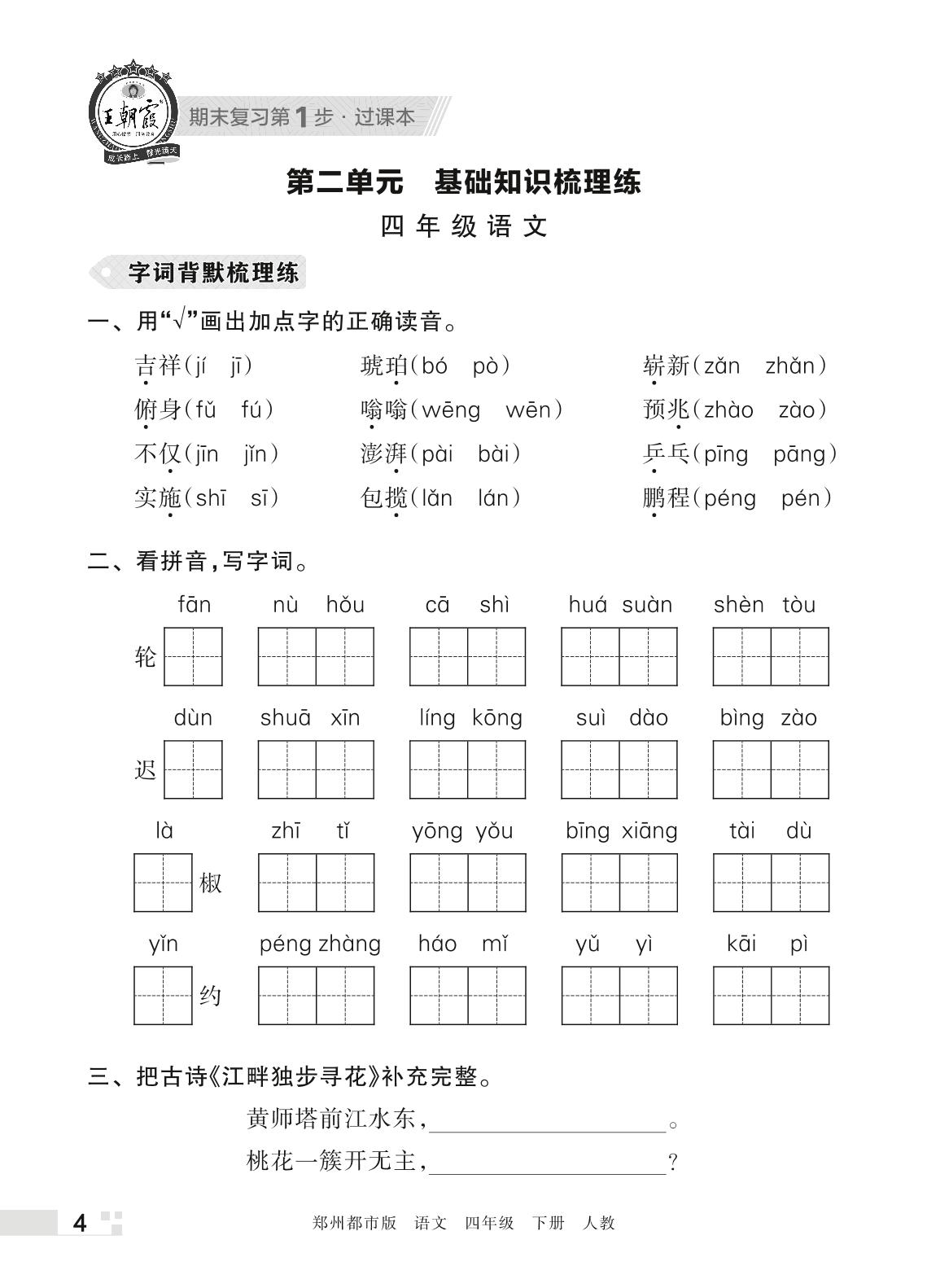 王朝霞期末过课本——第二单元 基础知识梳理练四年级下册语文(人教版)_R220331144328982