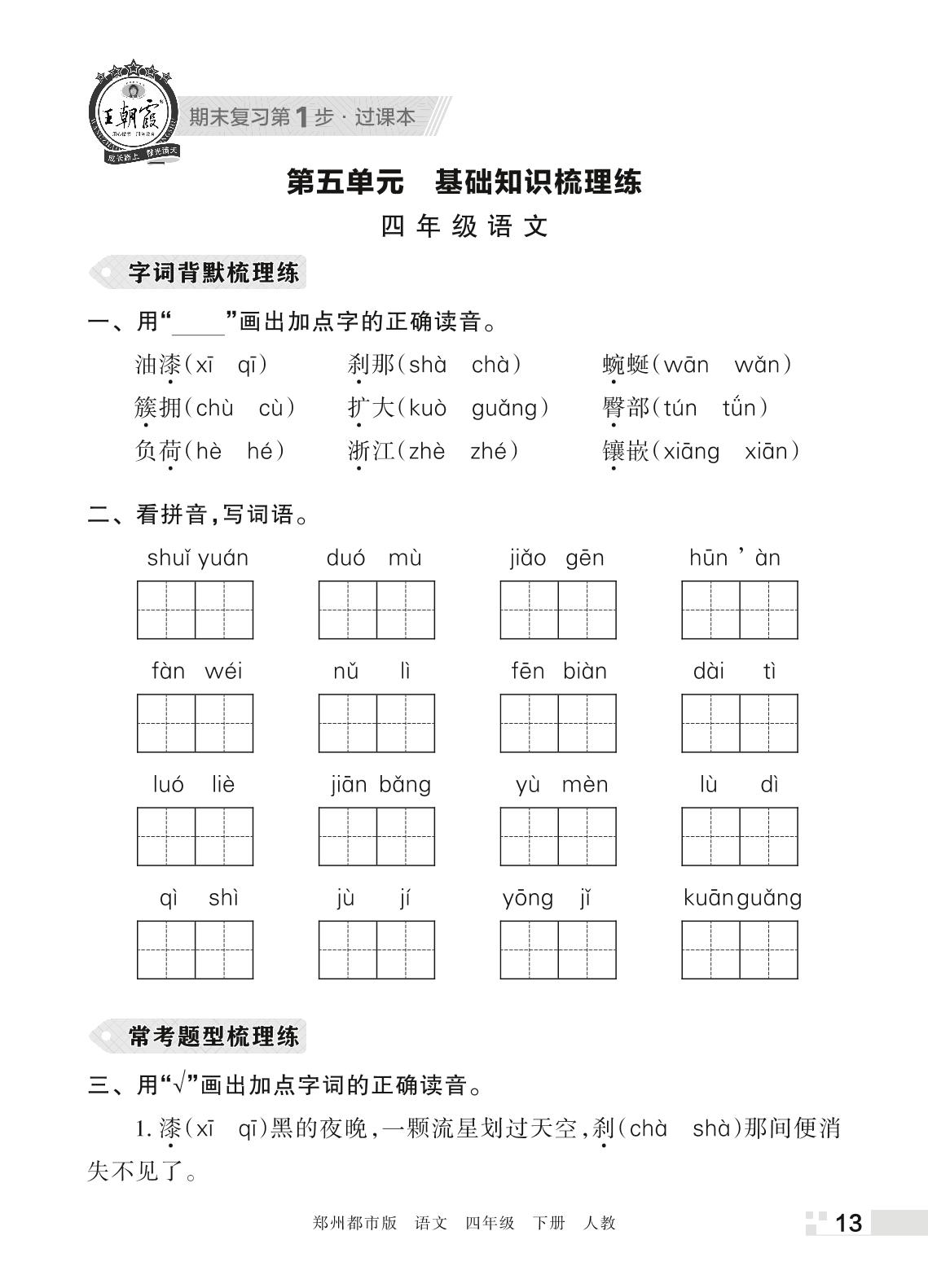 王朝霞期末过课本——第五单元 基础知识梳理练四年级下册语文(人教版)_R220331144328703
