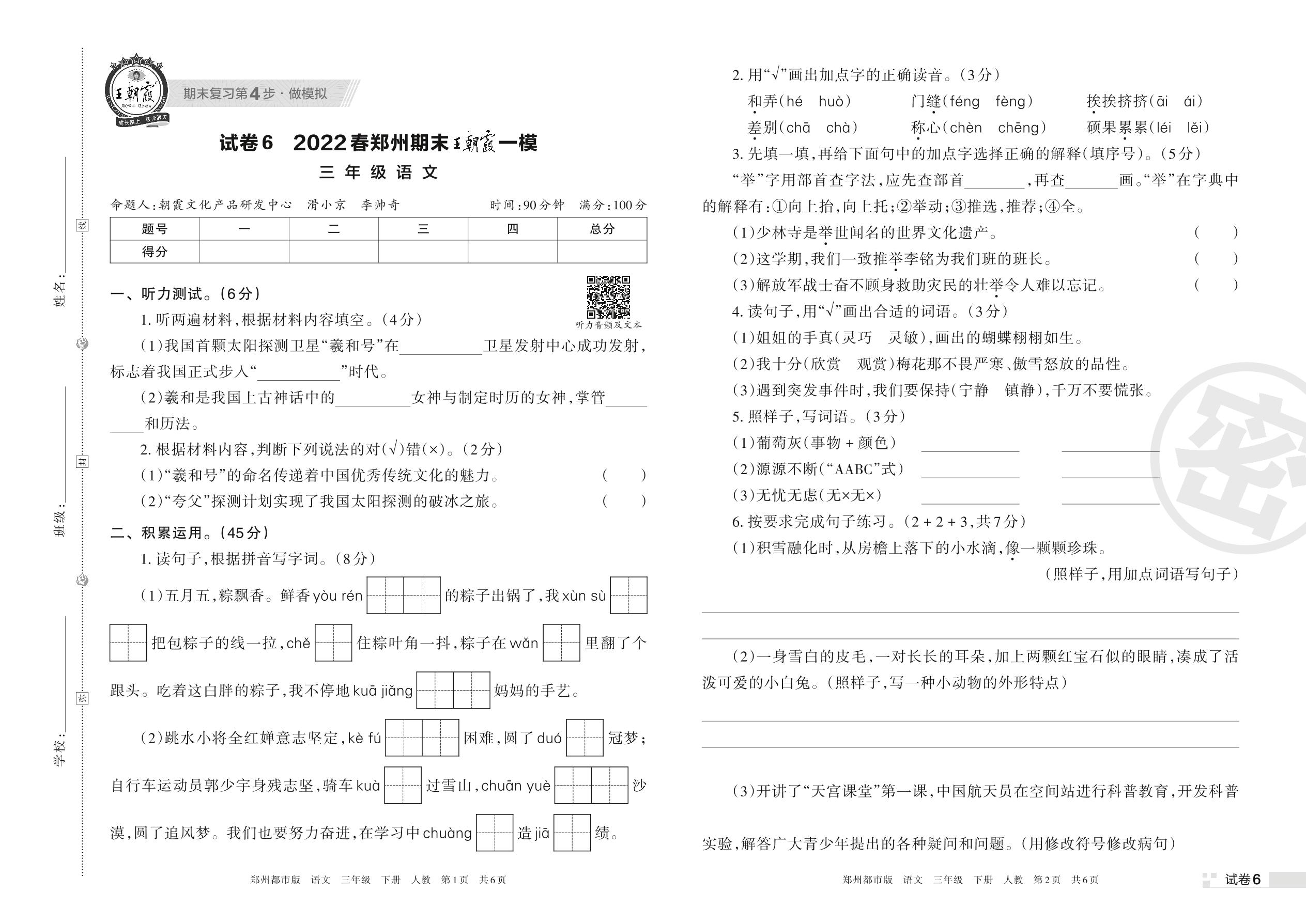 王朝霞期末模拟卷三年级下册语文(人教版)_R220331145420327【6】