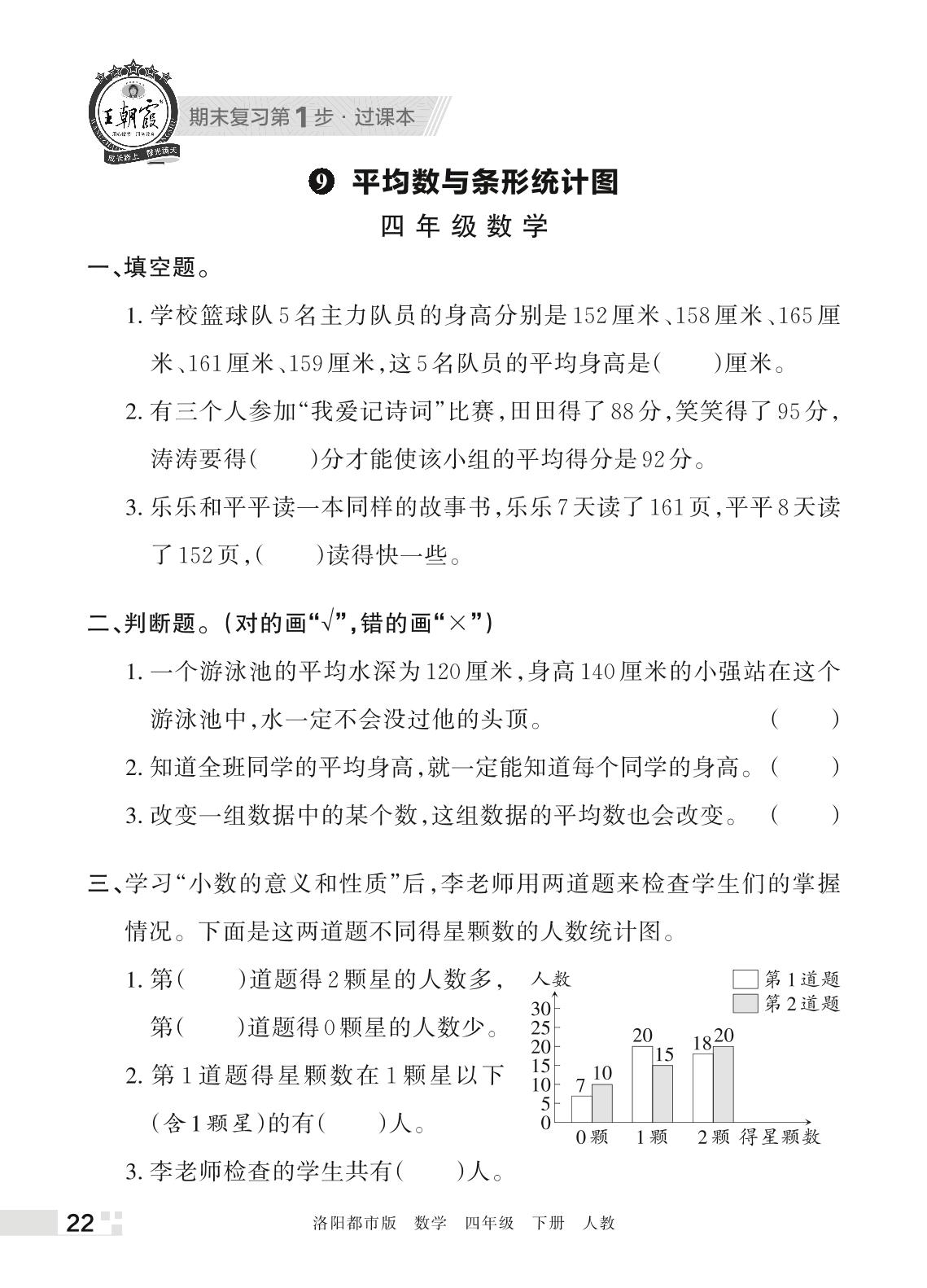 王朝霞期末过课本——9 平均数与条形统计图四年级下册数学(人教版)_R220331150315361