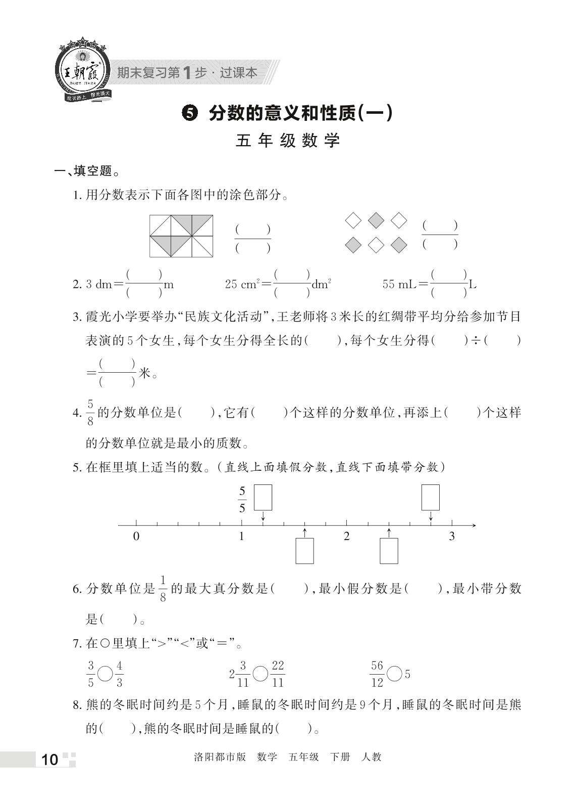 王朝霞期末过课本——5 分数的意义和性质(一)五年级下册数学(人教版)_R220331151225329