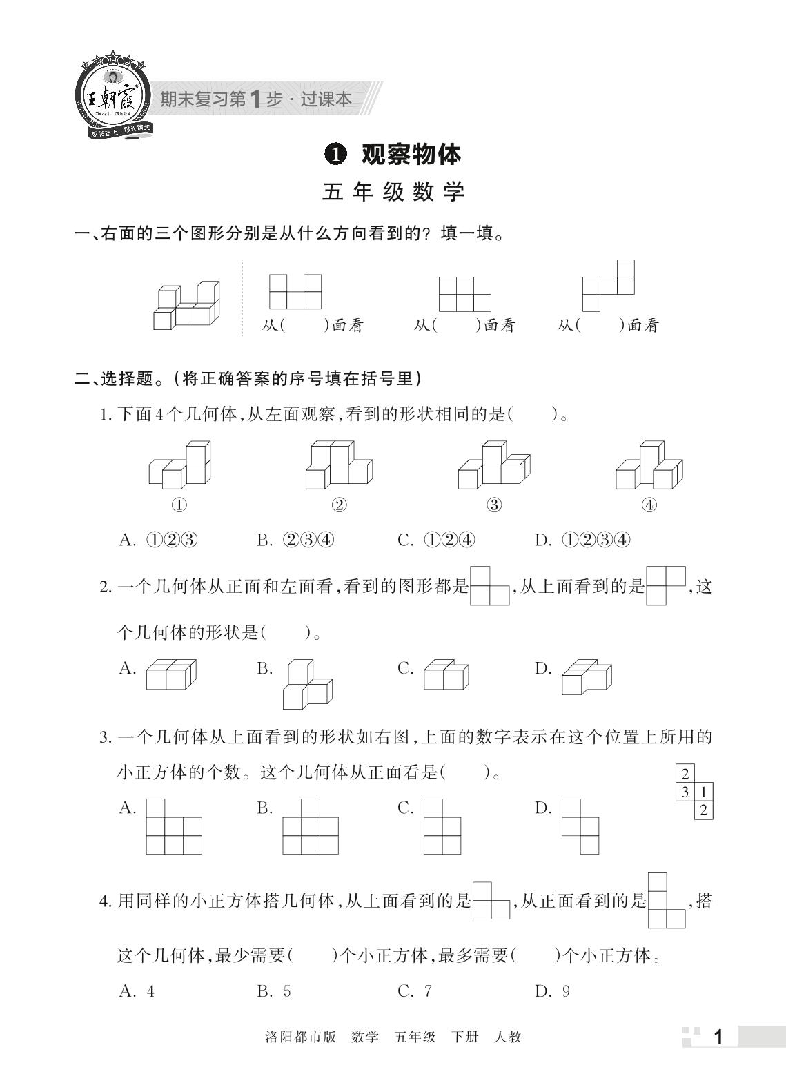 王朝霞期末过课本——1 观察物体五年级下册数学(人教版)_R220331151225365