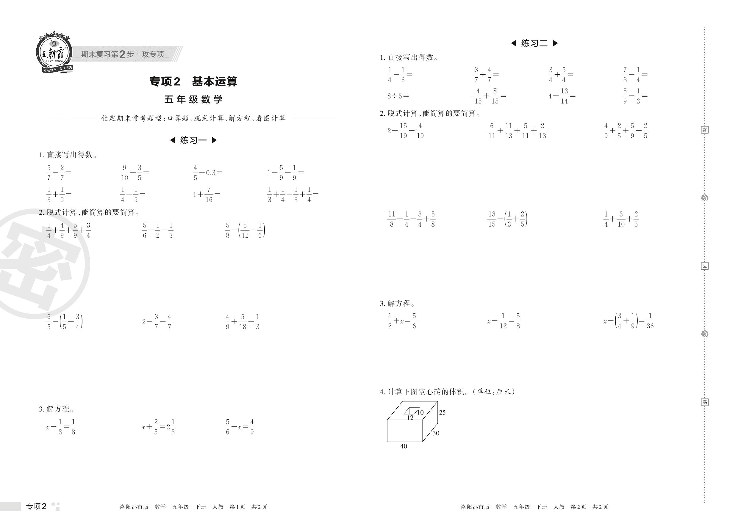 王朝霞期末专项卷——基本运算五年级下册数学(人教版)_R220331151226966【2】