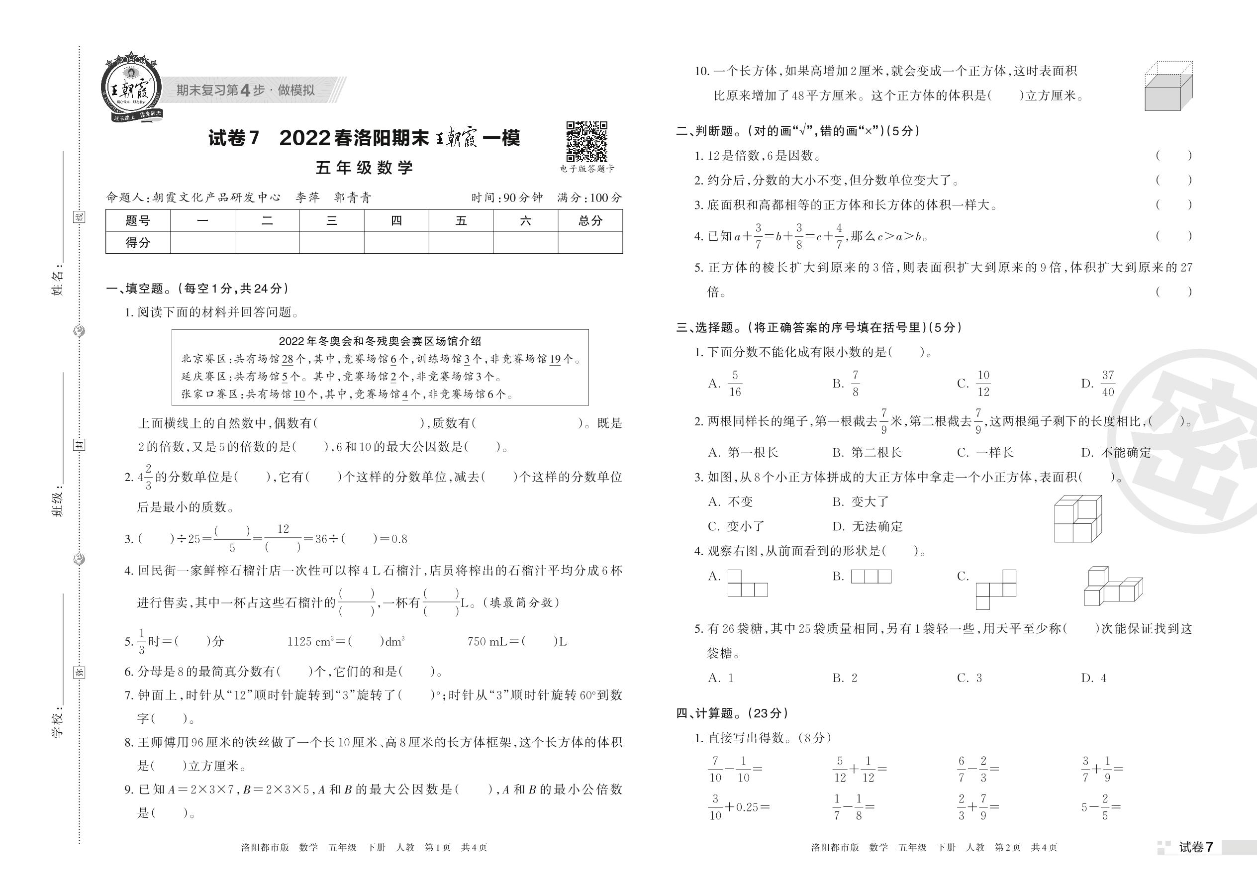 王朝霞期末模拟卷五年级下册数学(人教版)_R220331151227453【7】