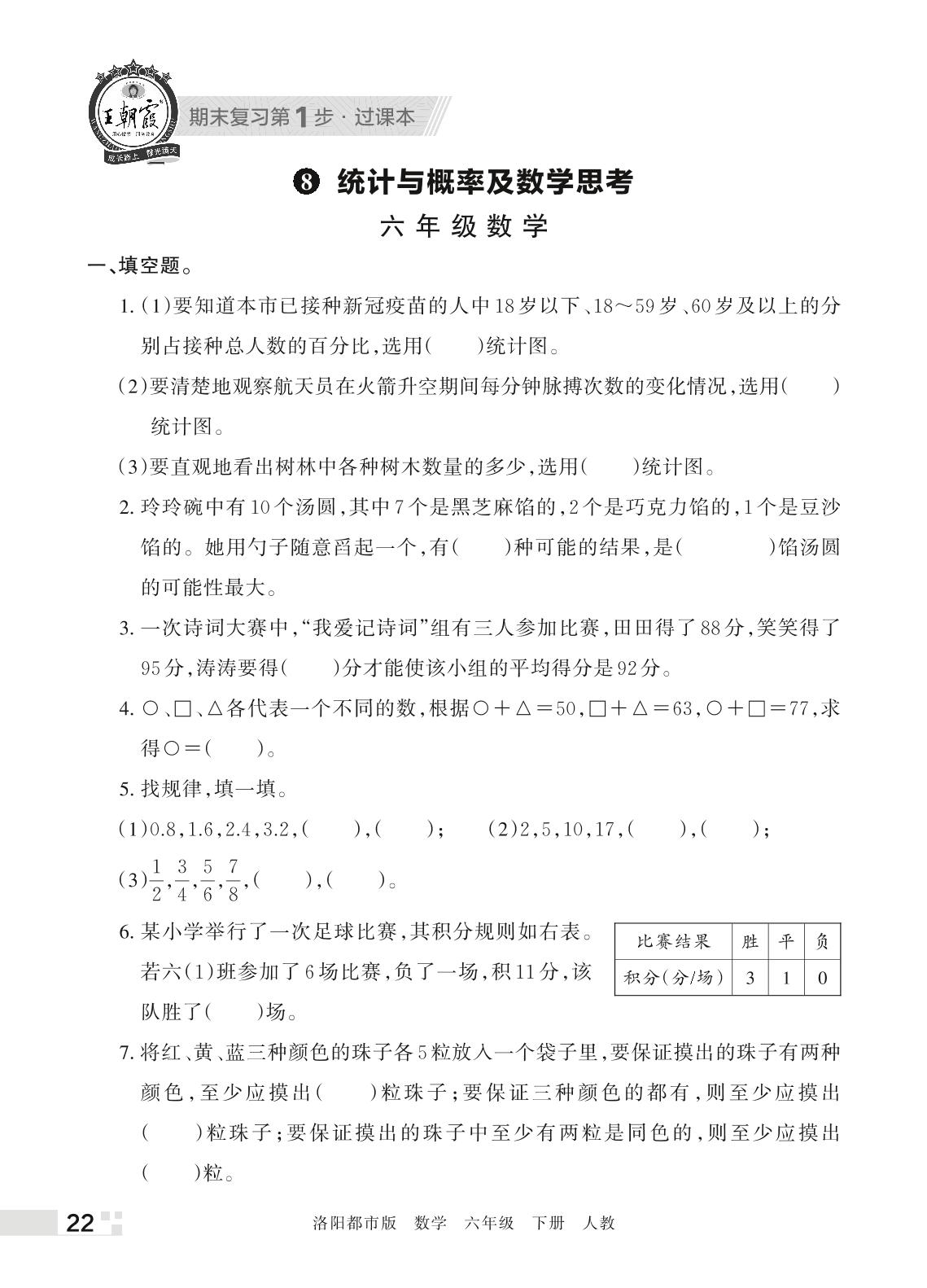 王朝霞期末过课本——8 统计与概率及数学思考六年级下册数学(人教版)_R220331151821119