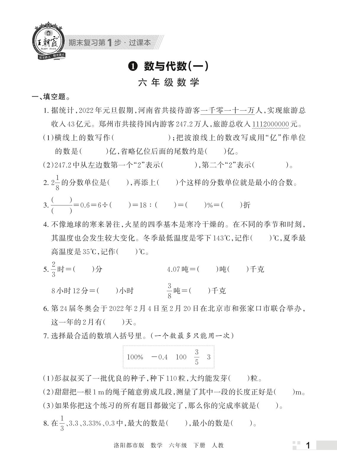 王朝霞期末过课本——1 数与代数(一)六年级下册数学(人教版)_R220331151821761