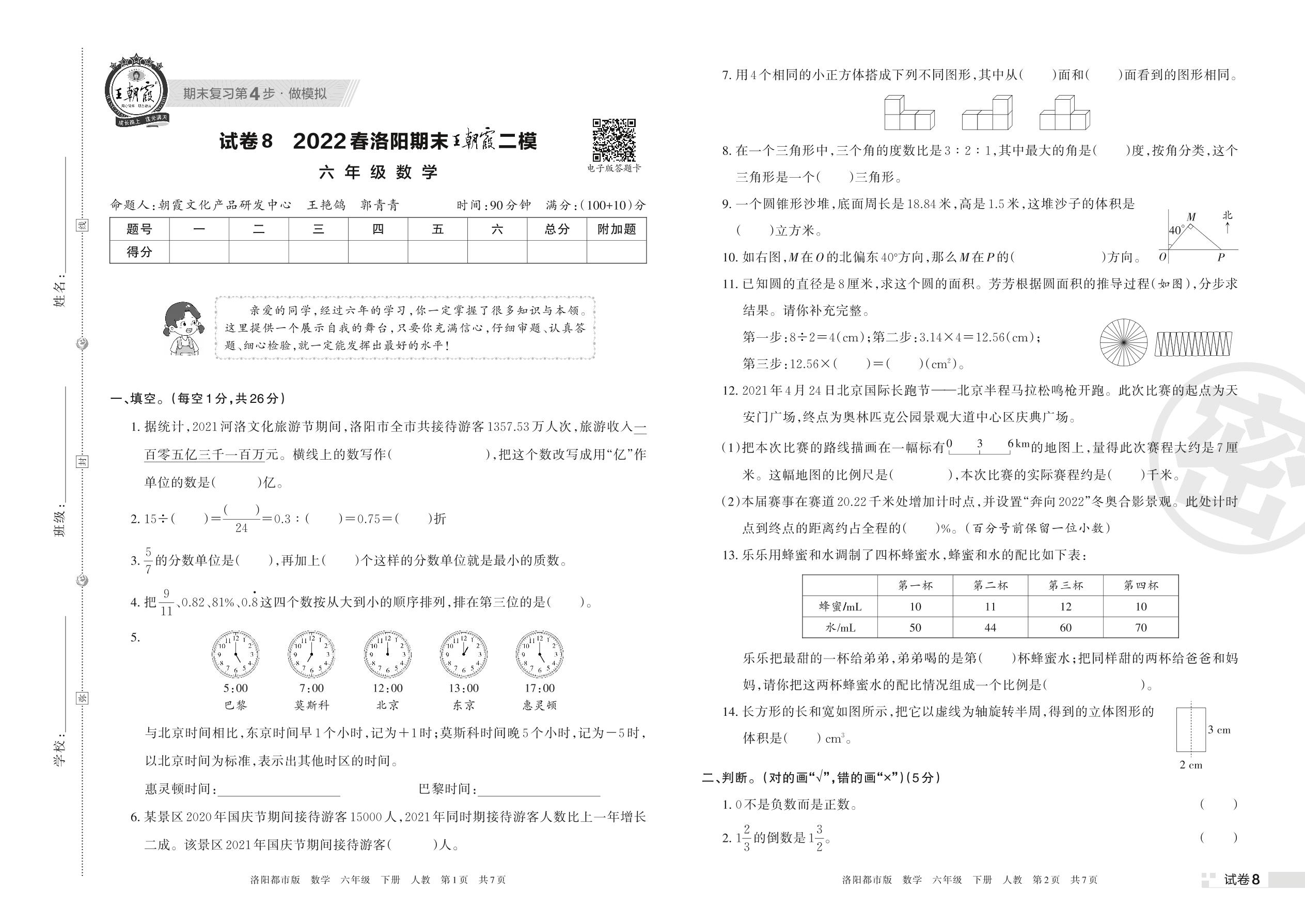 王朝霞期末模拟卷六年级下册数学(人教版)_R220331151823799【8】