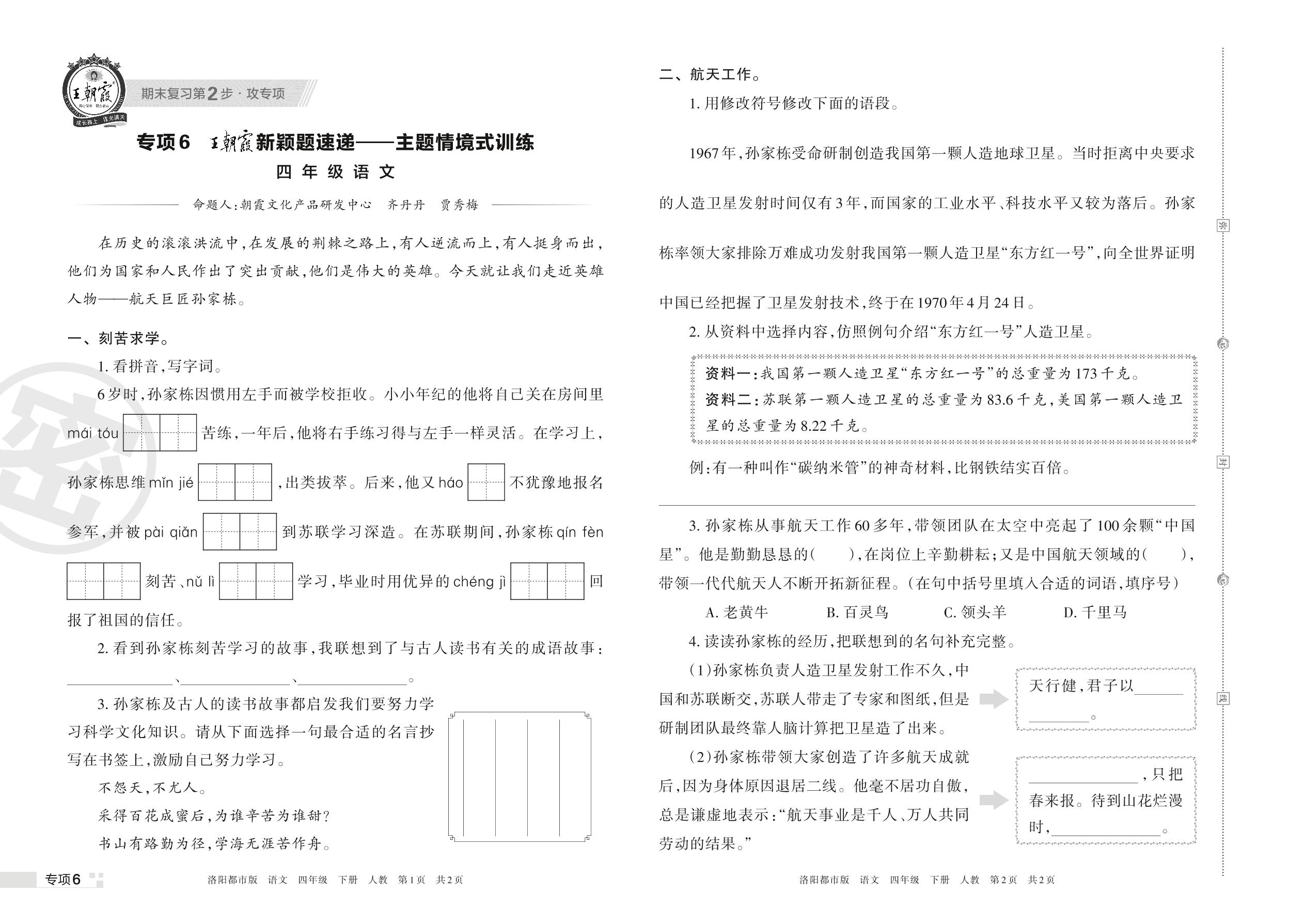 王朝霞期末专项卷——新颖题速递:主题情境式训练四年级下册语文(人教版)_R220331153016574【6】