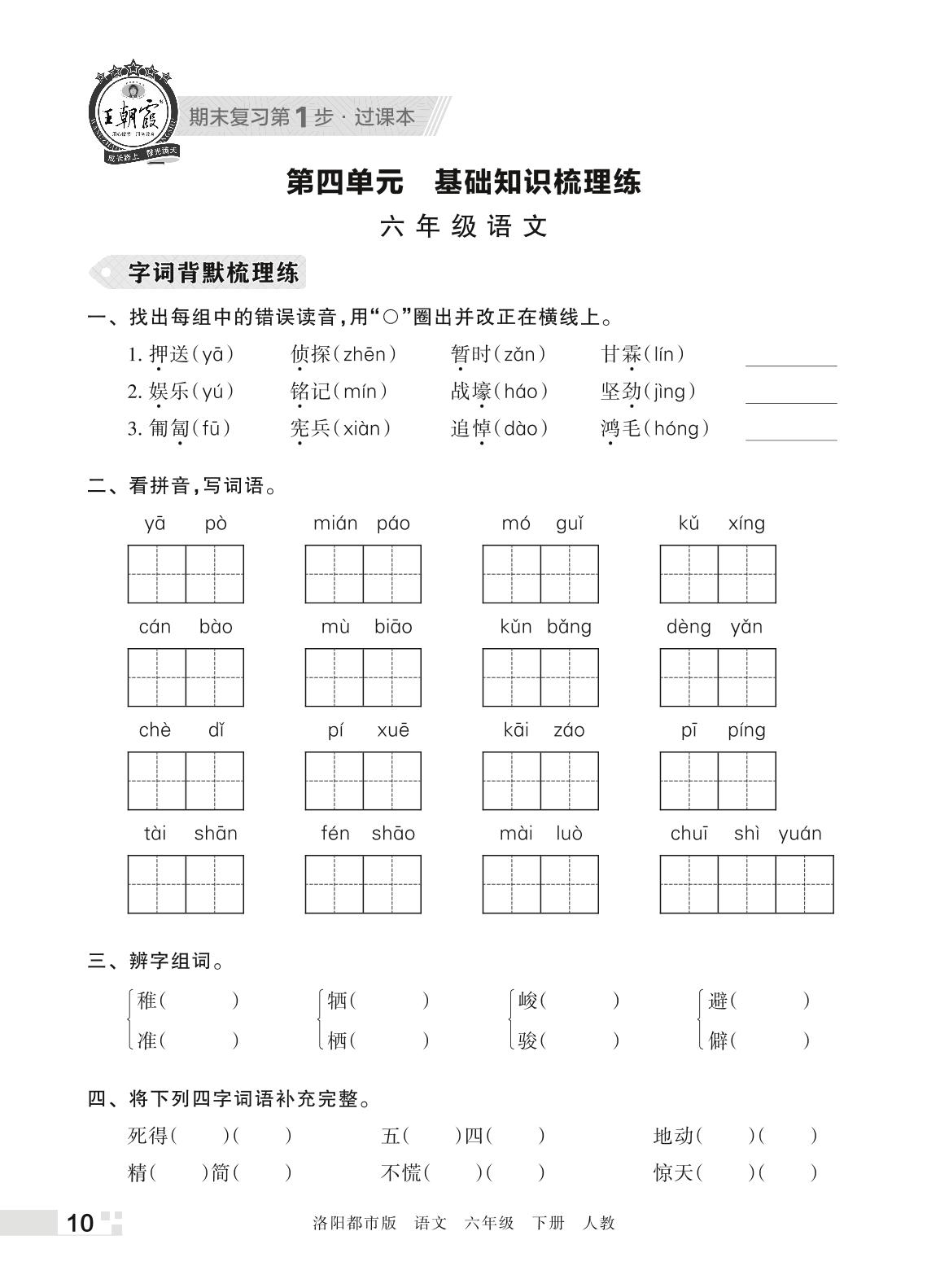 王朝霞期末过课本——第四单元 基础知识梳理练六年级下册语文(人教版)_R220331154200877