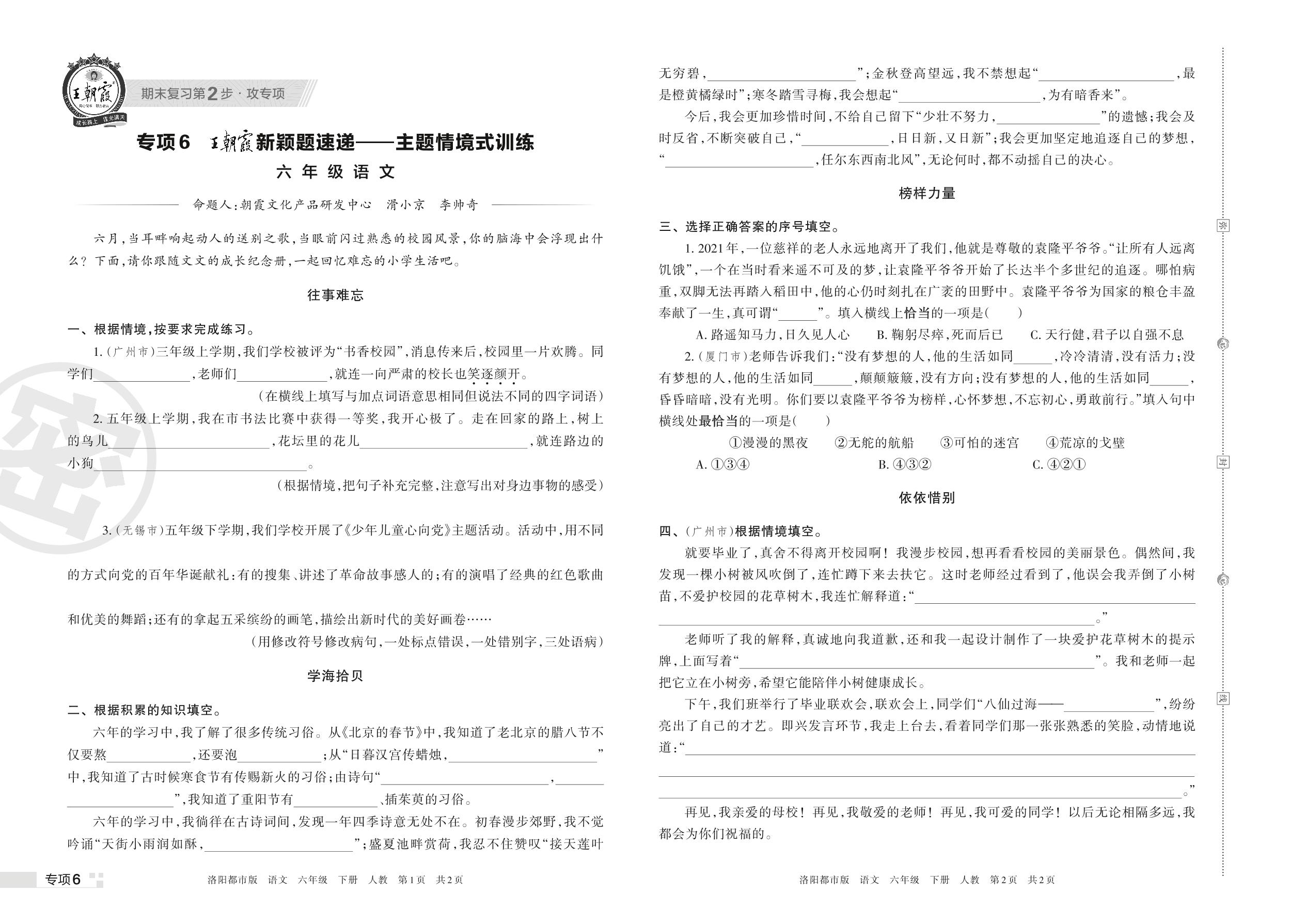 王朝霞期末专项卷——新颖题速递:主题情境式训练六年级下册语文(人教版)_R220331154201495【6】
