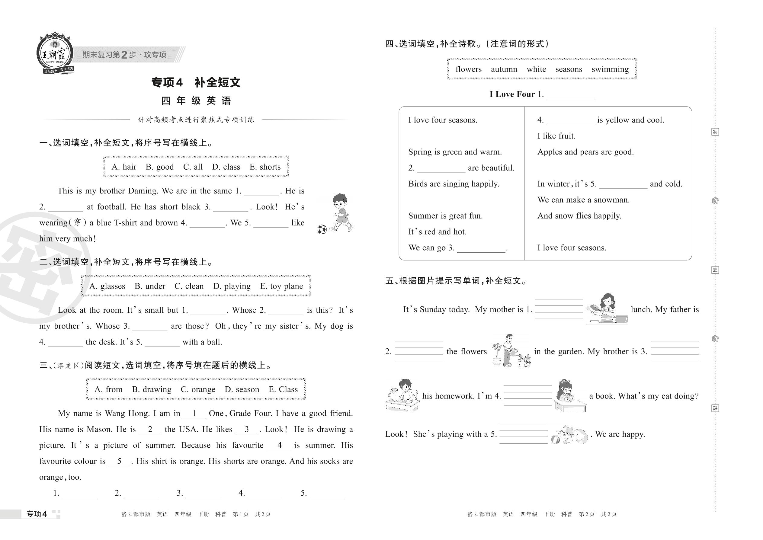 王朝霞期末专项卷——补全短文四年级下册英语(科普版)_R220331154831248【4】