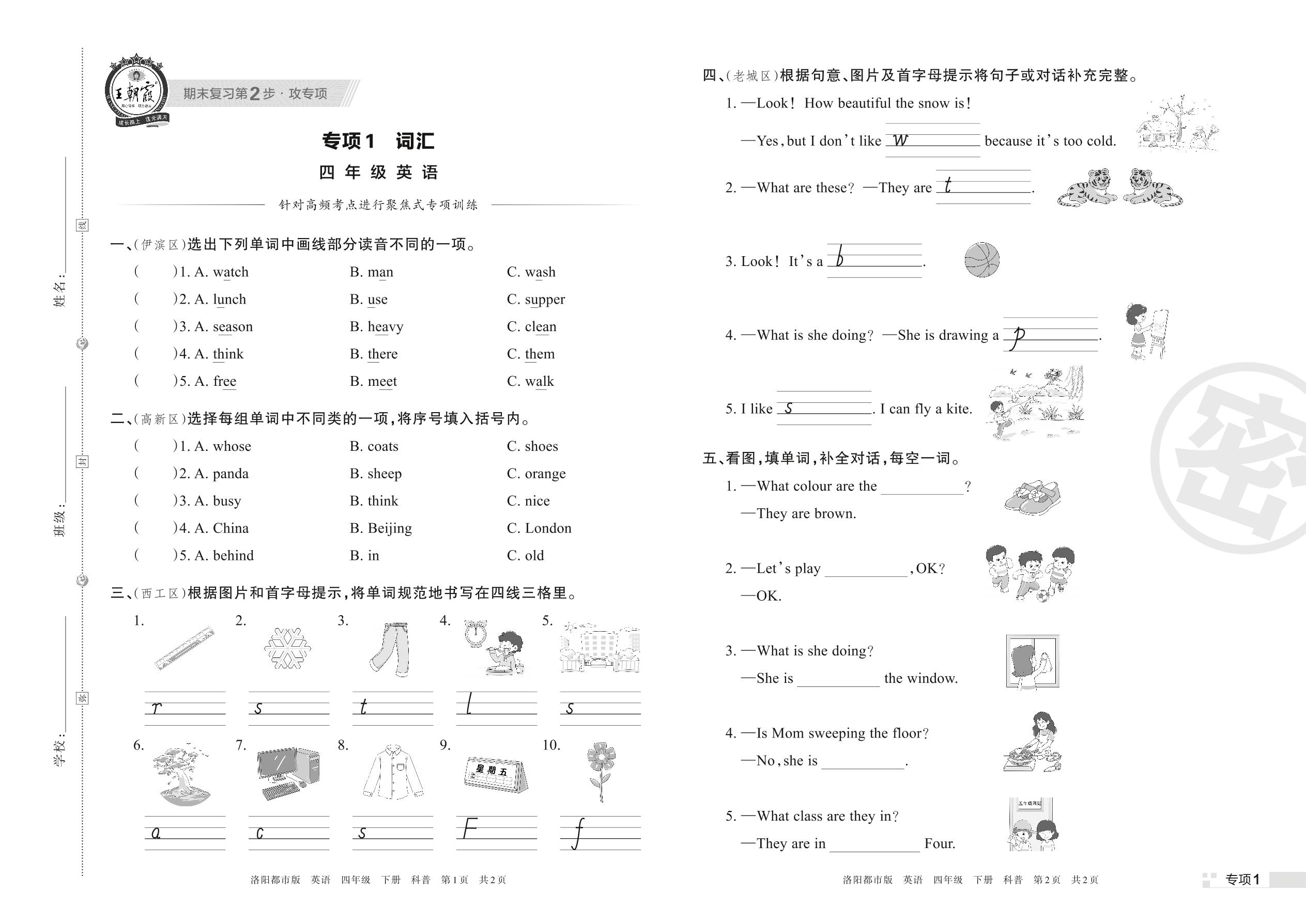 王朝霞期末专项卷——词汇四年级下册英语(科普版)_R220331154831612【1】