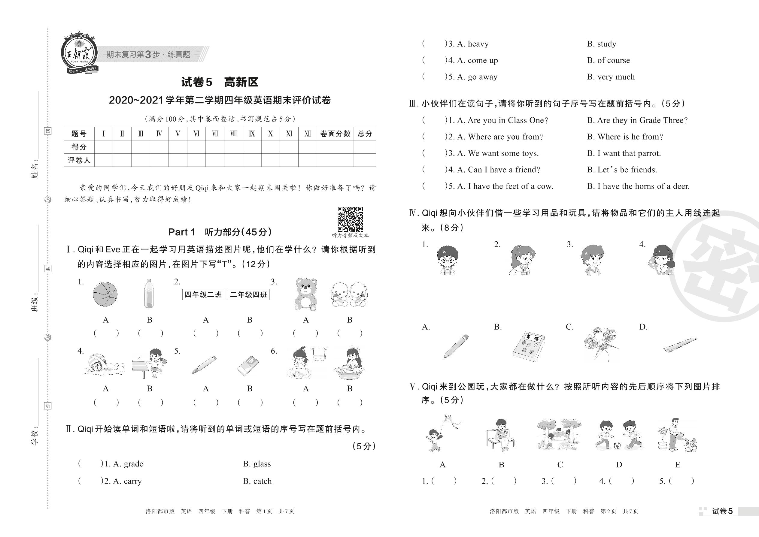 高新区2020~2021学年第二学期四年级英语期末评价试卷(科普版)【5】