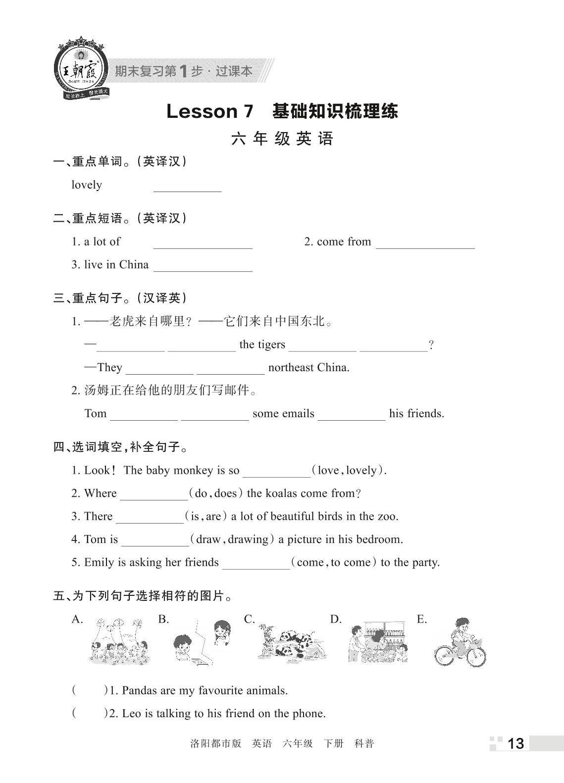 王朝霞期末过课本——Lesson 7 基础知识梳理练六年级下册英语(科普版)