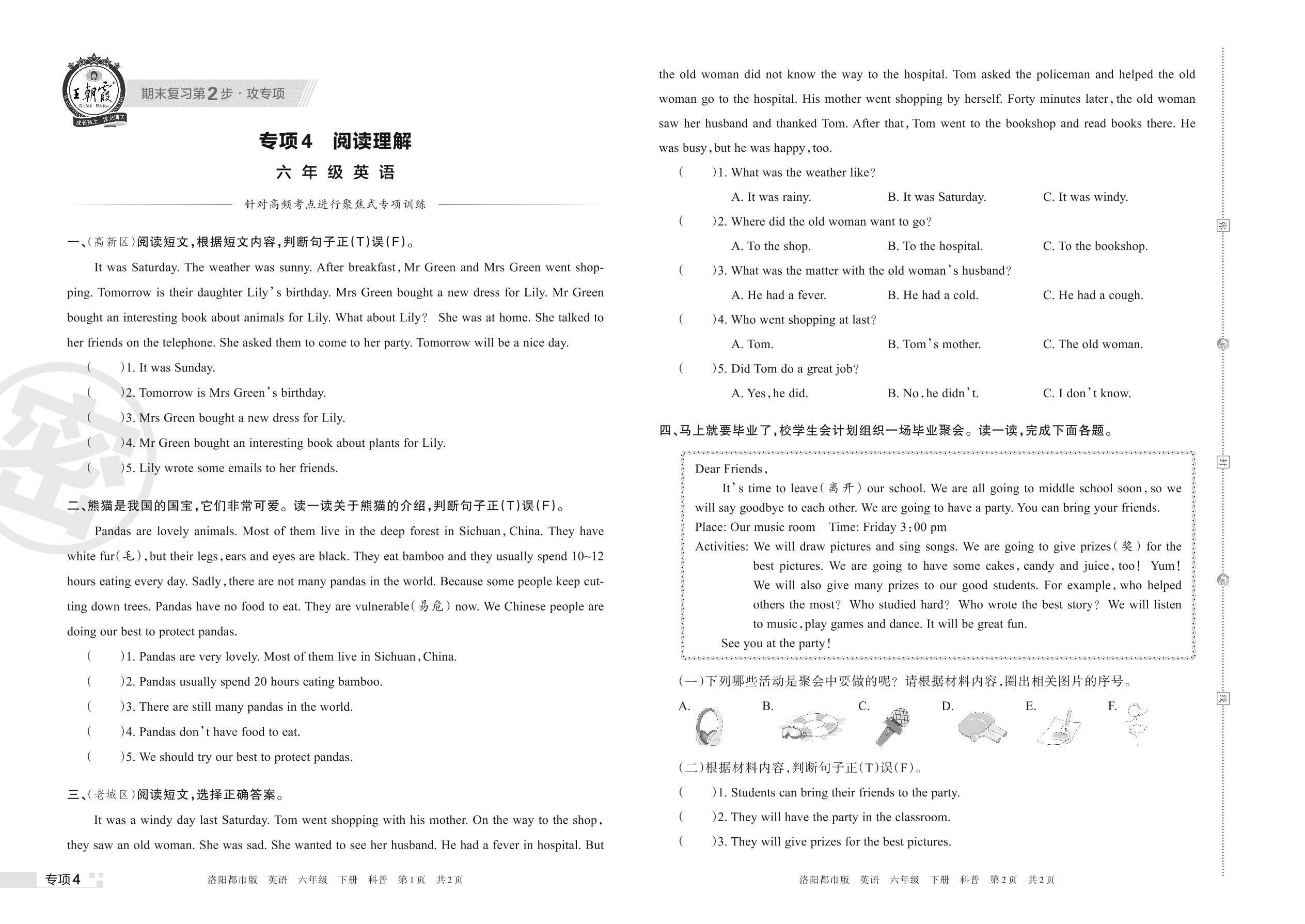 王朝霞期末专项卷——阅读理解六年级下册英语(科普版)_R220331155855467【4】