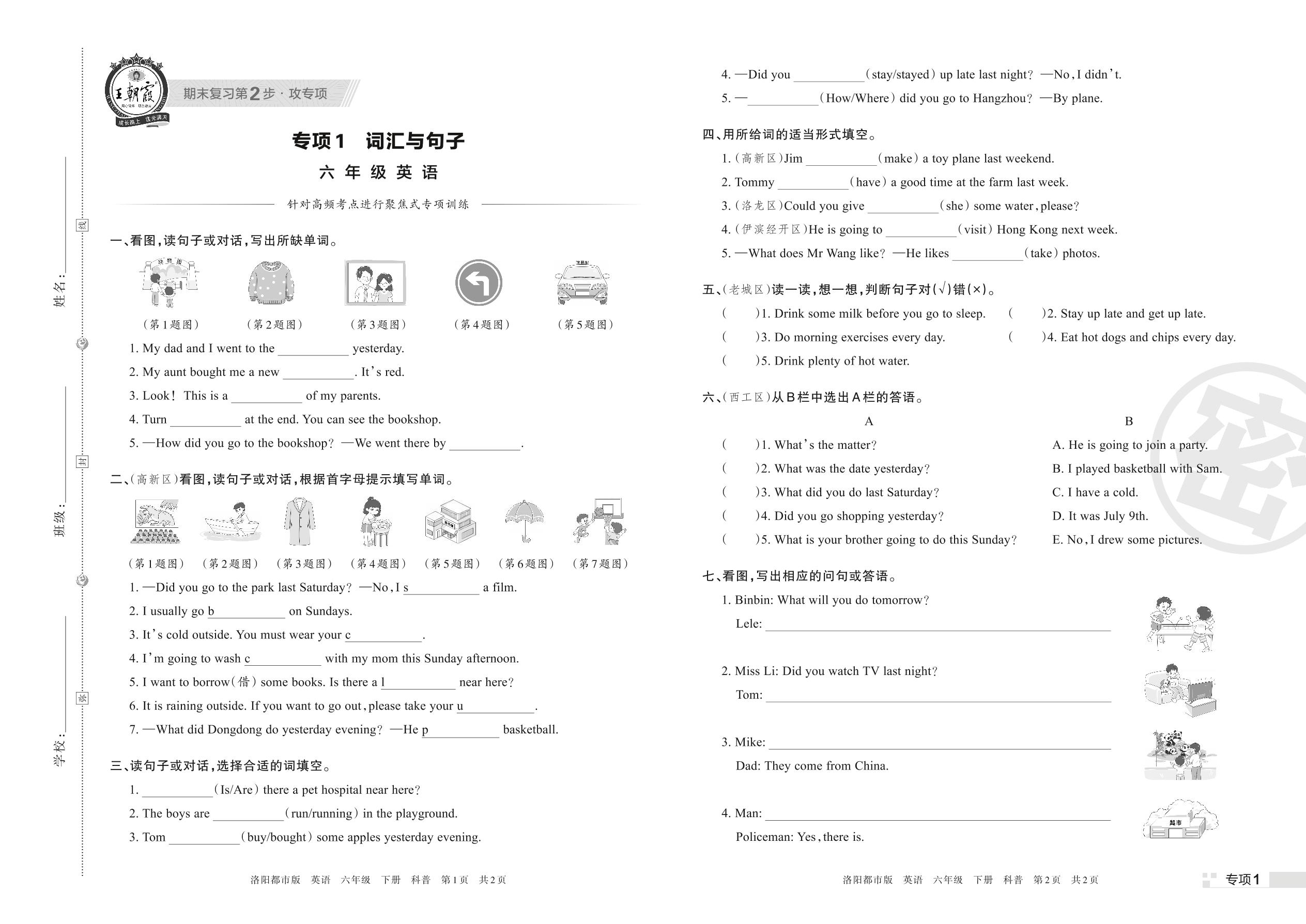 王朝霞期末专项卷——词汇与句子六年级下册英语(科普版)_R220331155855036【1】