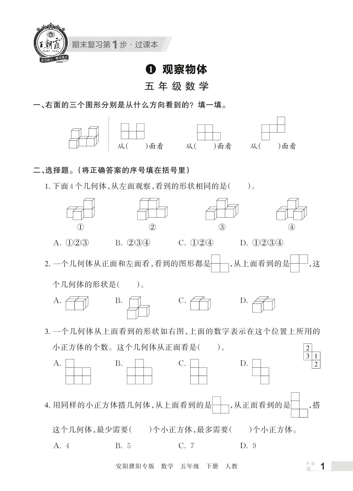 王朝霞期末过课本——1 观察物体五年级下册数学(人教版)_R220406134106186