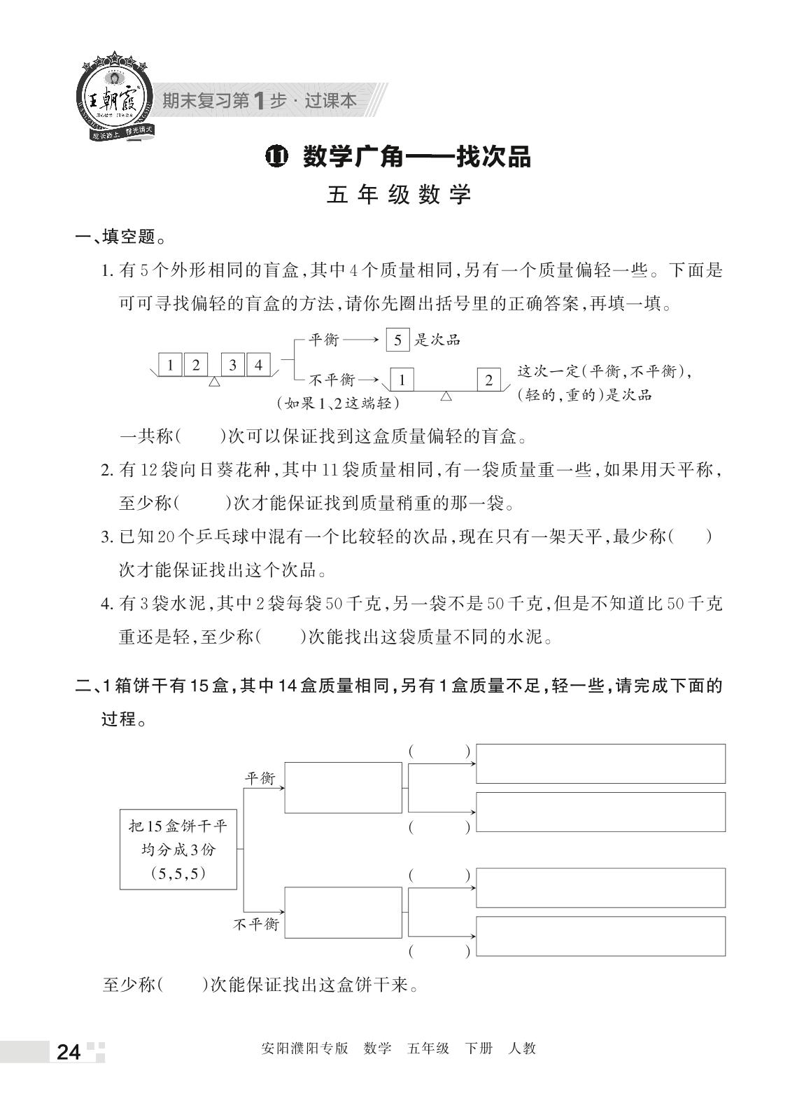 王朝霞期末过课本——11 数学广角:找次品五年级下册数学(人教版)_R220406134106583
