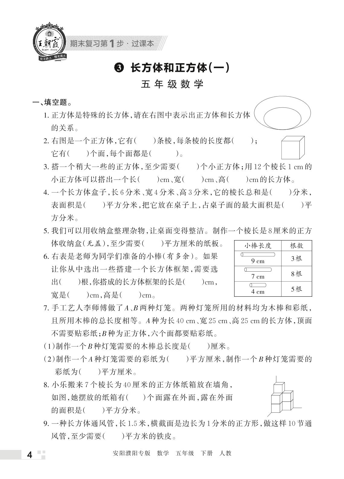 王朝霞期末过课本——3 长方体和正方体(一)五年级下册数学(人教版)_R220406134107815