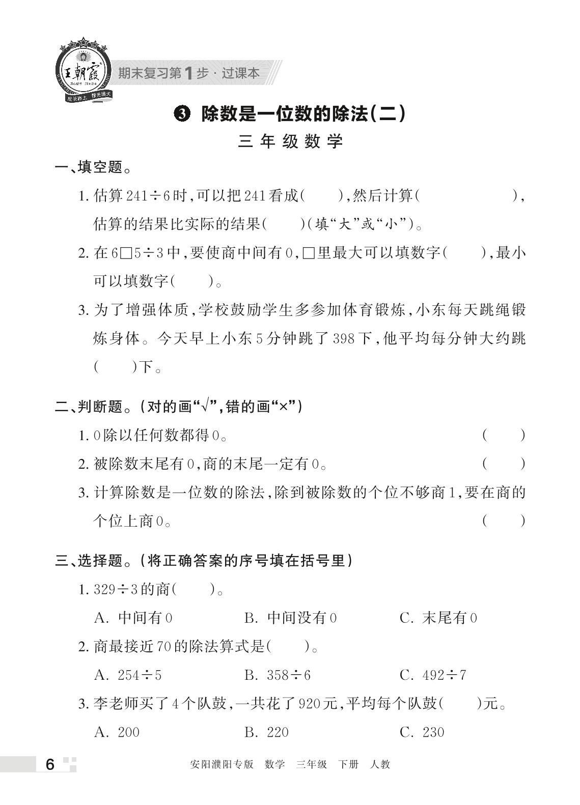 王朝霞期末过课本——3 除数是一位数的除法(二)三年级下册数学(人教版)_R220406143627467