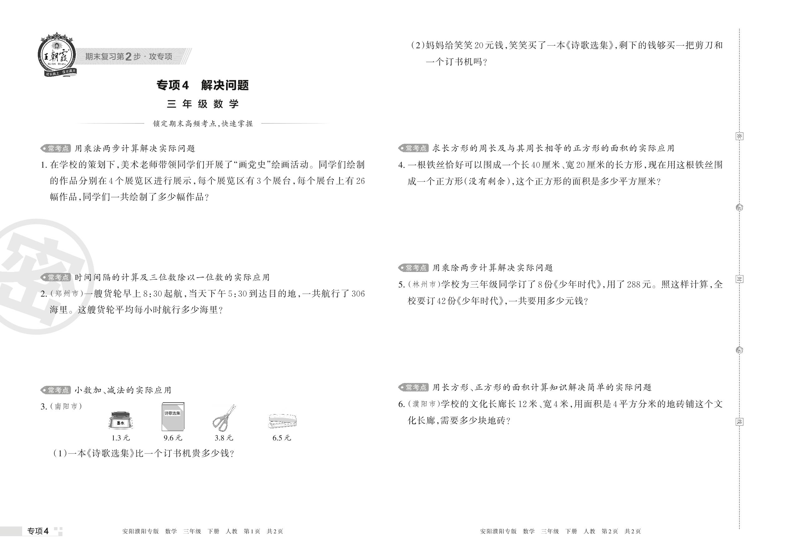 王朝霞期末专项卷——解决问题三年级下册数学(人教版)_R220406143628571【4】