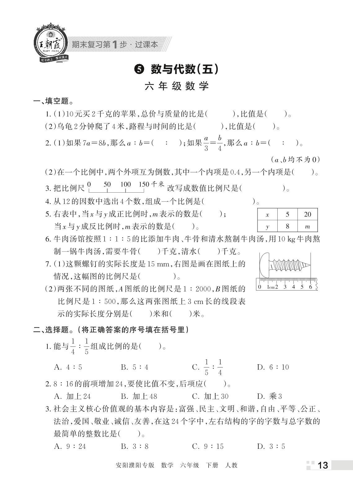 王朝霞期末过课本——5 数与代数(五)六年级下册数学(人教版)_R220406145413263