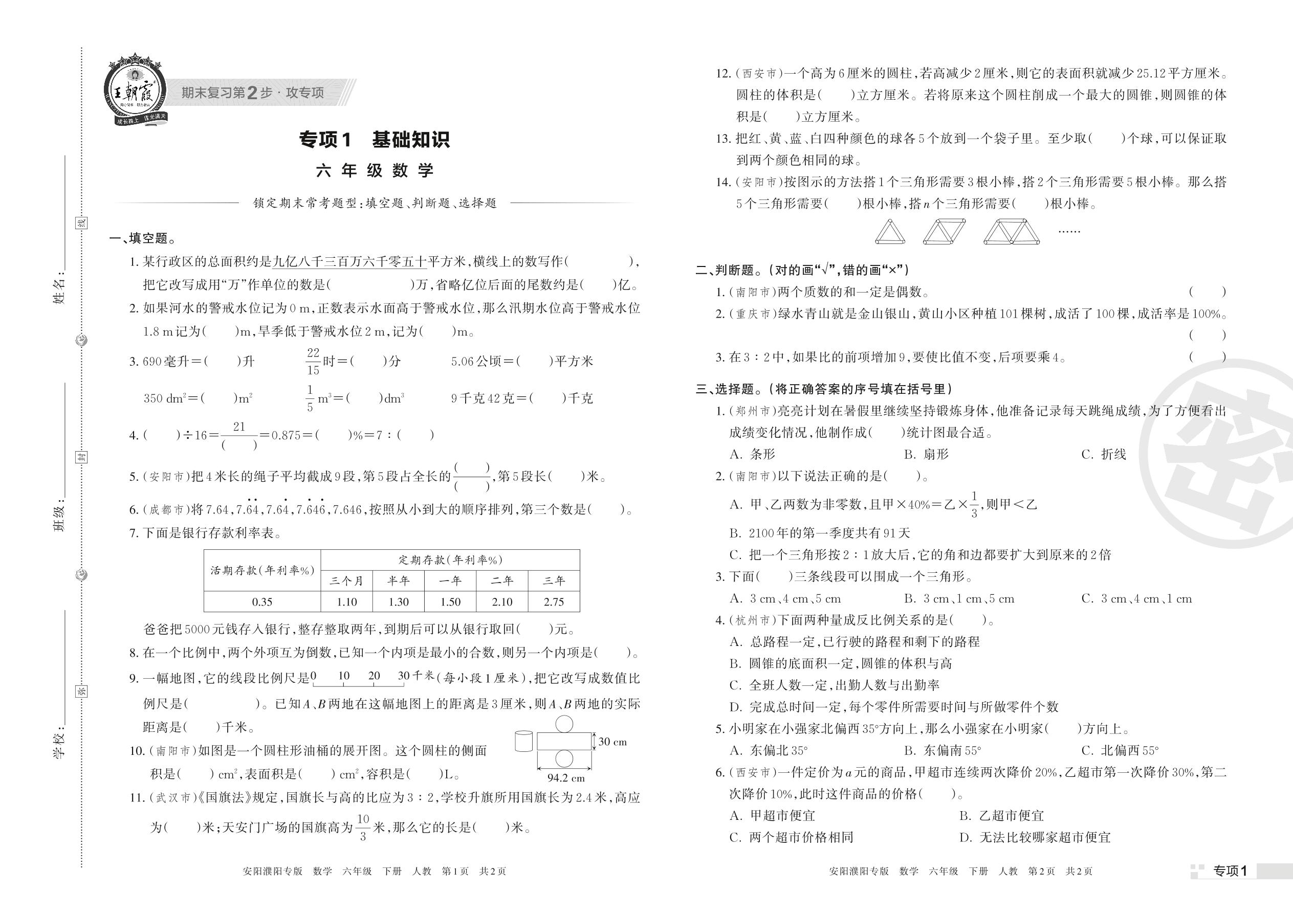 王朝霞期末专项卷——基础知识六年级下册数学(人教版)【1】415615612102
