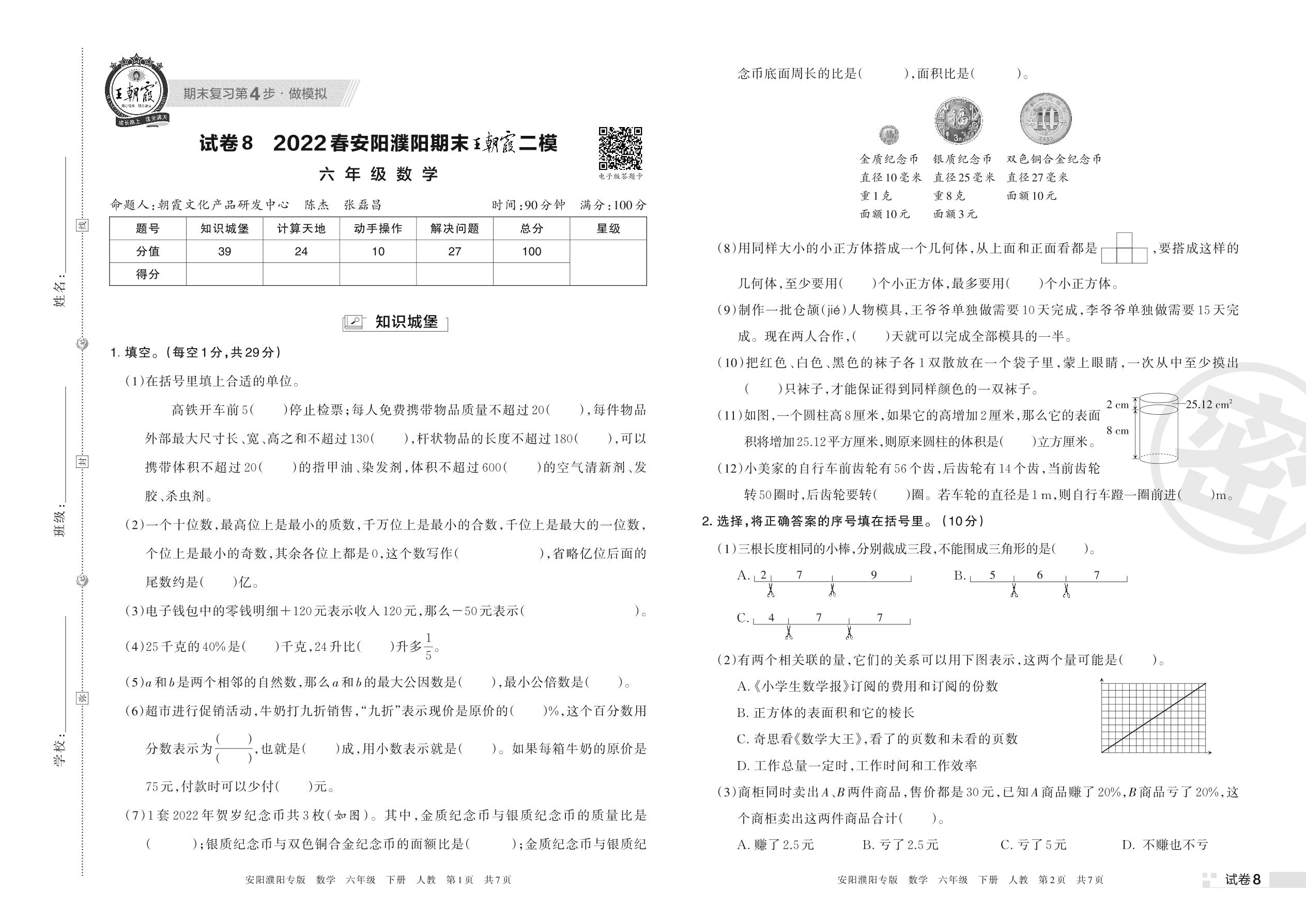 王朝霞期末模拟卷六年级下册数学(人教版)_R220406145415883【8】