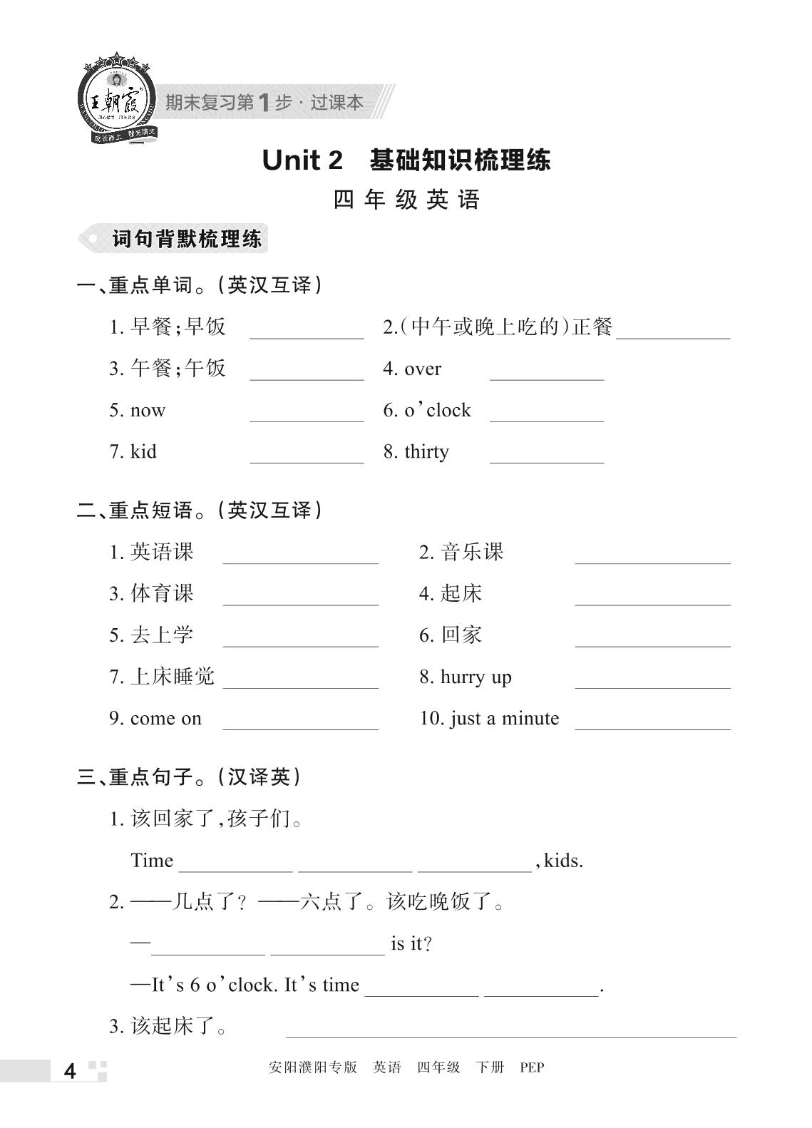 王朝霞期末过课本——Unit 2 基础知识梳理练四年级下册英语(PEP版)_R220406153056202