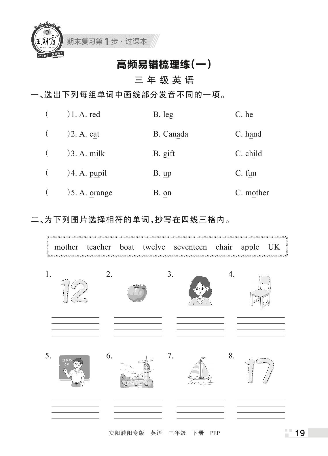 王朝霞期末过课本——高频易错梳理练(一)三年级下册英语(PEP版)_R220406160947924