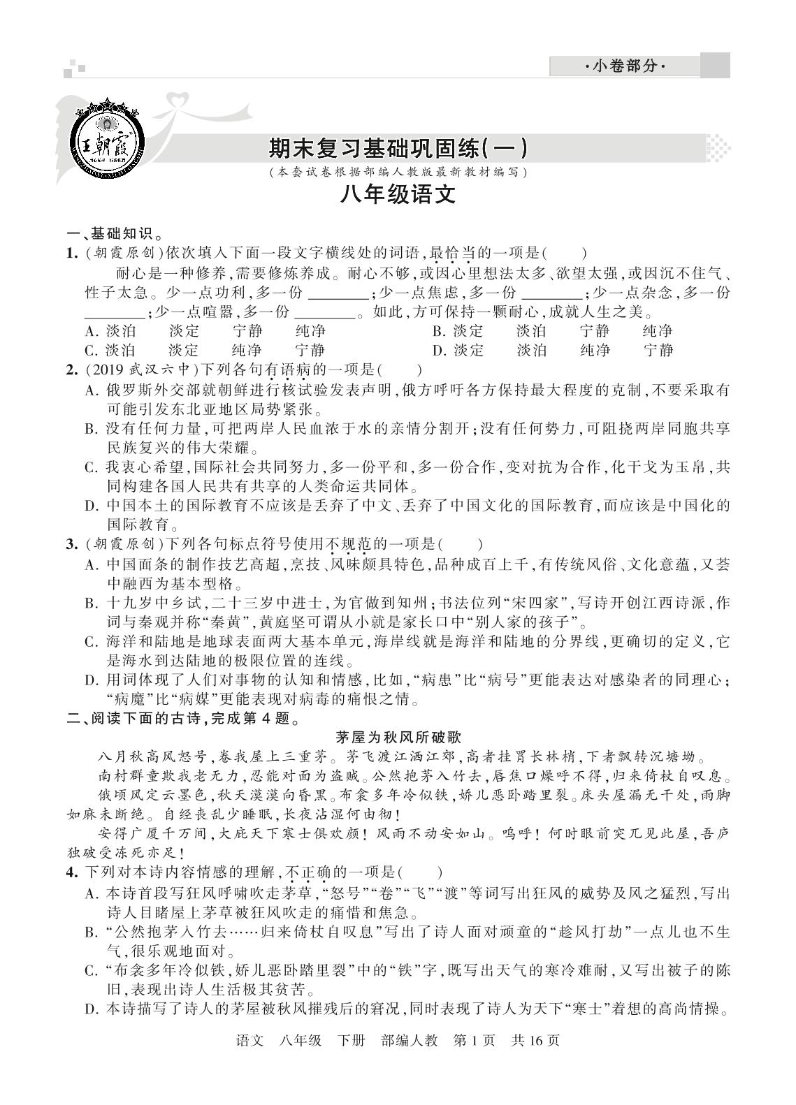 王朝霞期末小卷——期末复习基础巩固练八年级下册语文(人教版)_R21080220921【0】
