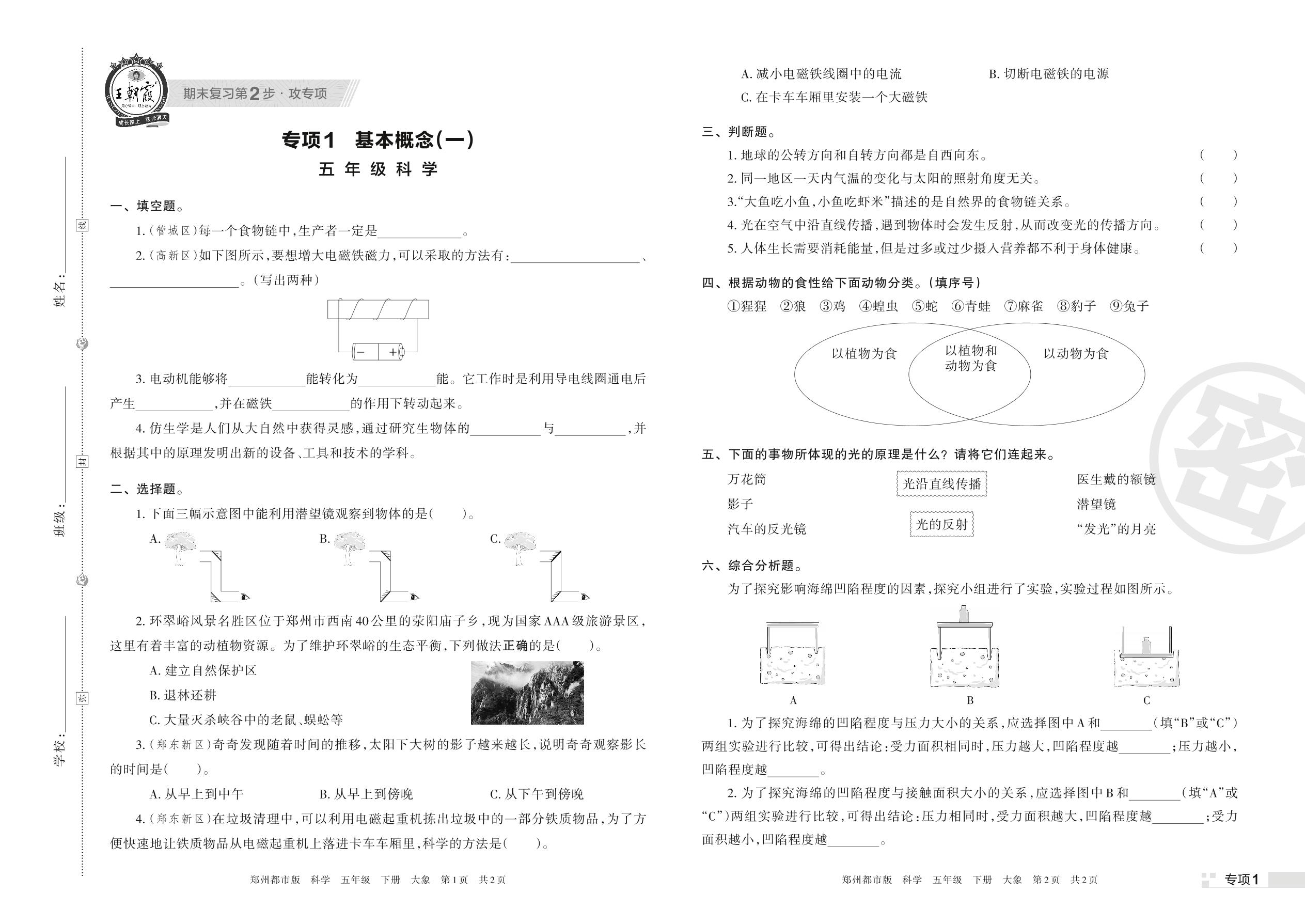 王朝霞期末专项卷——基本概念(一)五年级下册科学(大象版)【1】