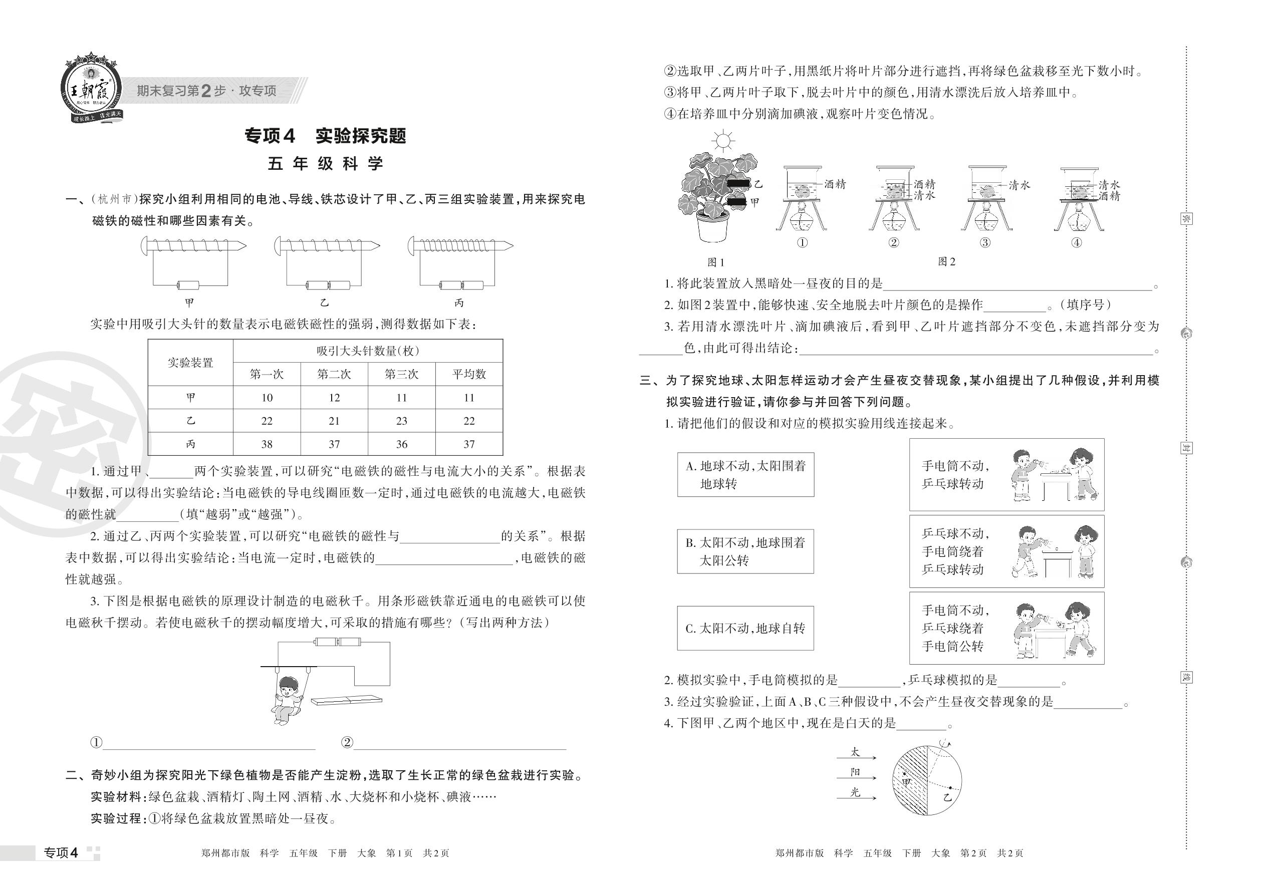 王朝霞期末专项卷——实验探究题五年级下册科学(大象版)【4】