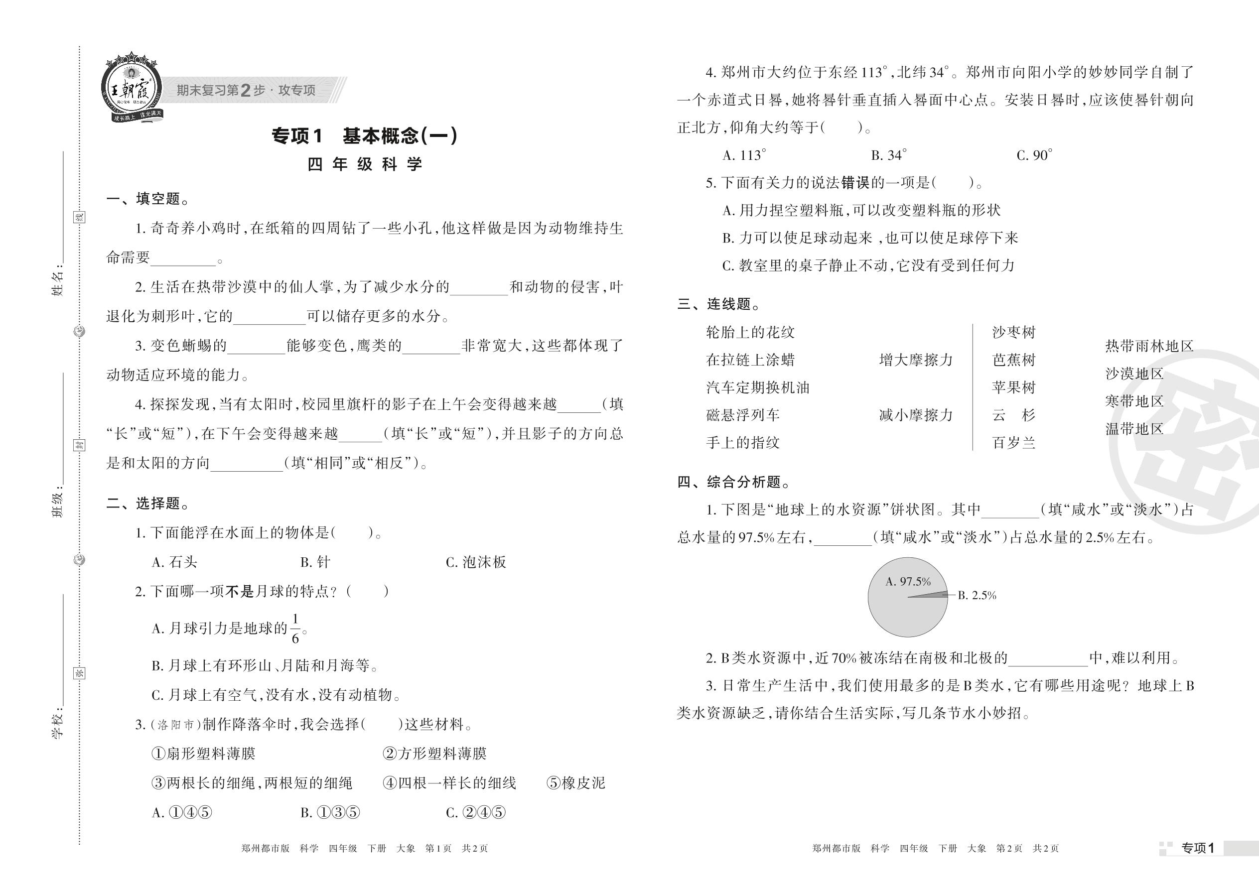 王朝霞期末专项卷——基本概念(一)四年级下册科学(大象版)【1】