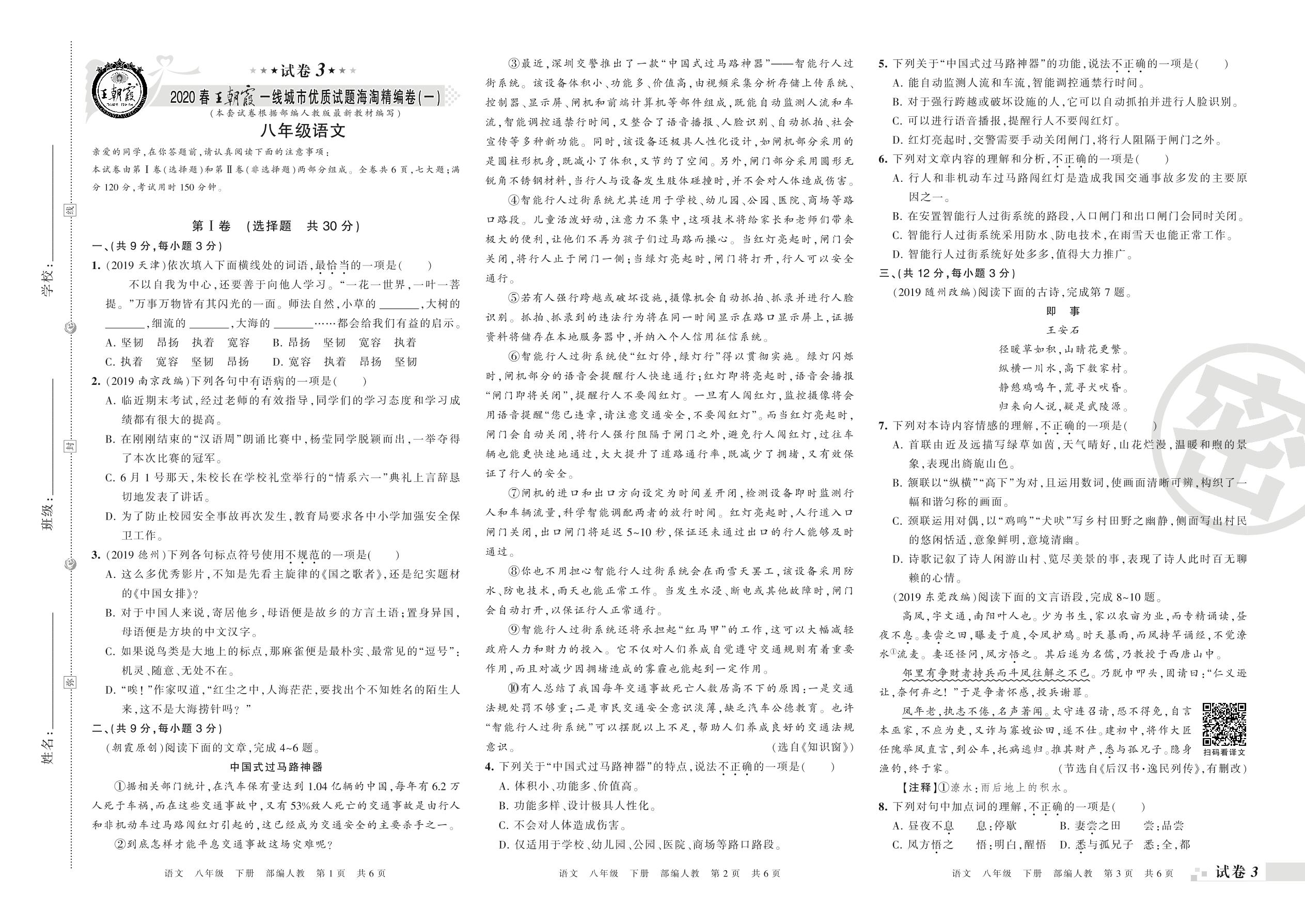 一线城市优质试题海淘精编卷(一)八年级下册语文(人教版)【3】
