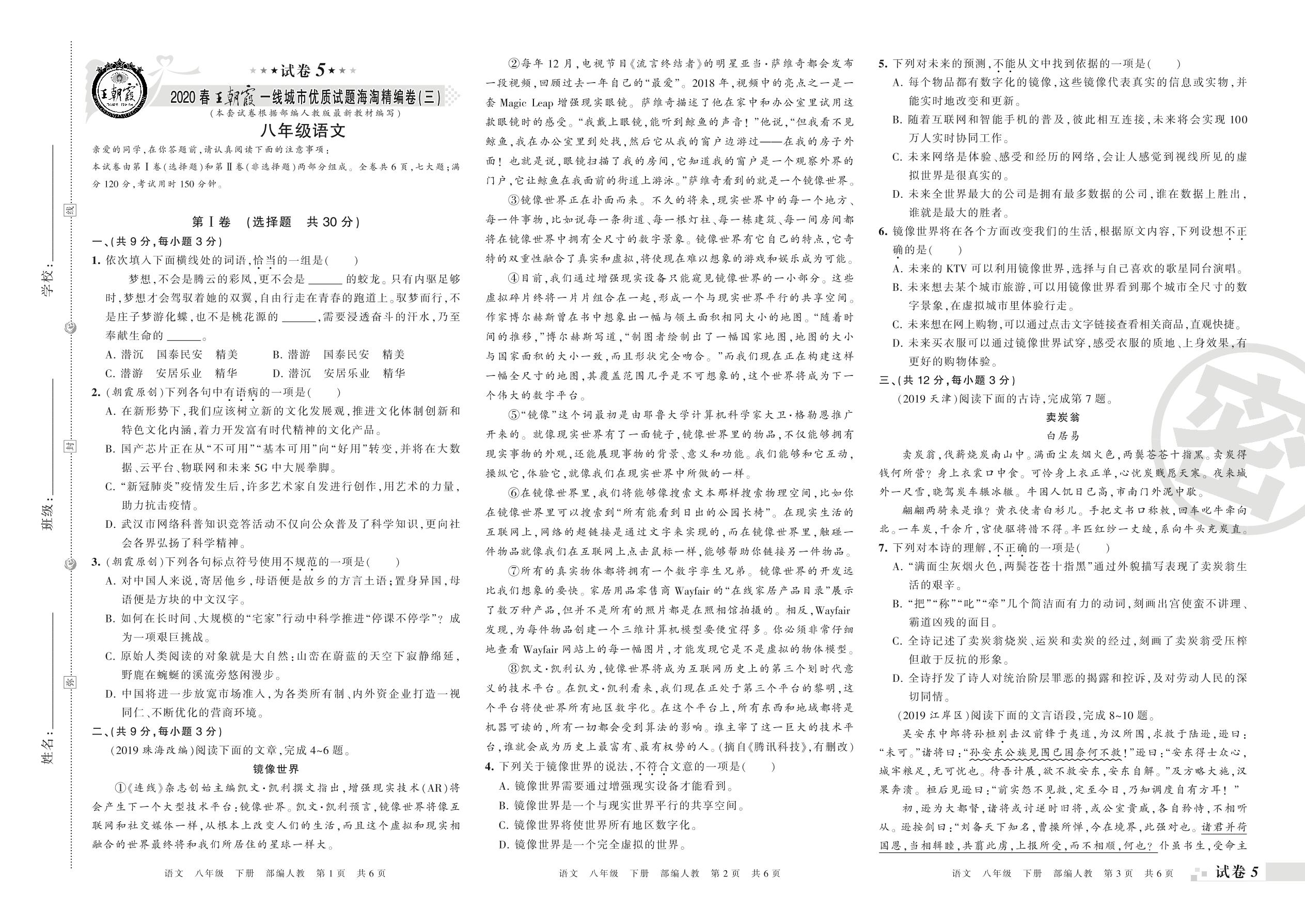 一线城市优质试题海淘精编卷(三)八年级下册语文(人教版)【5】