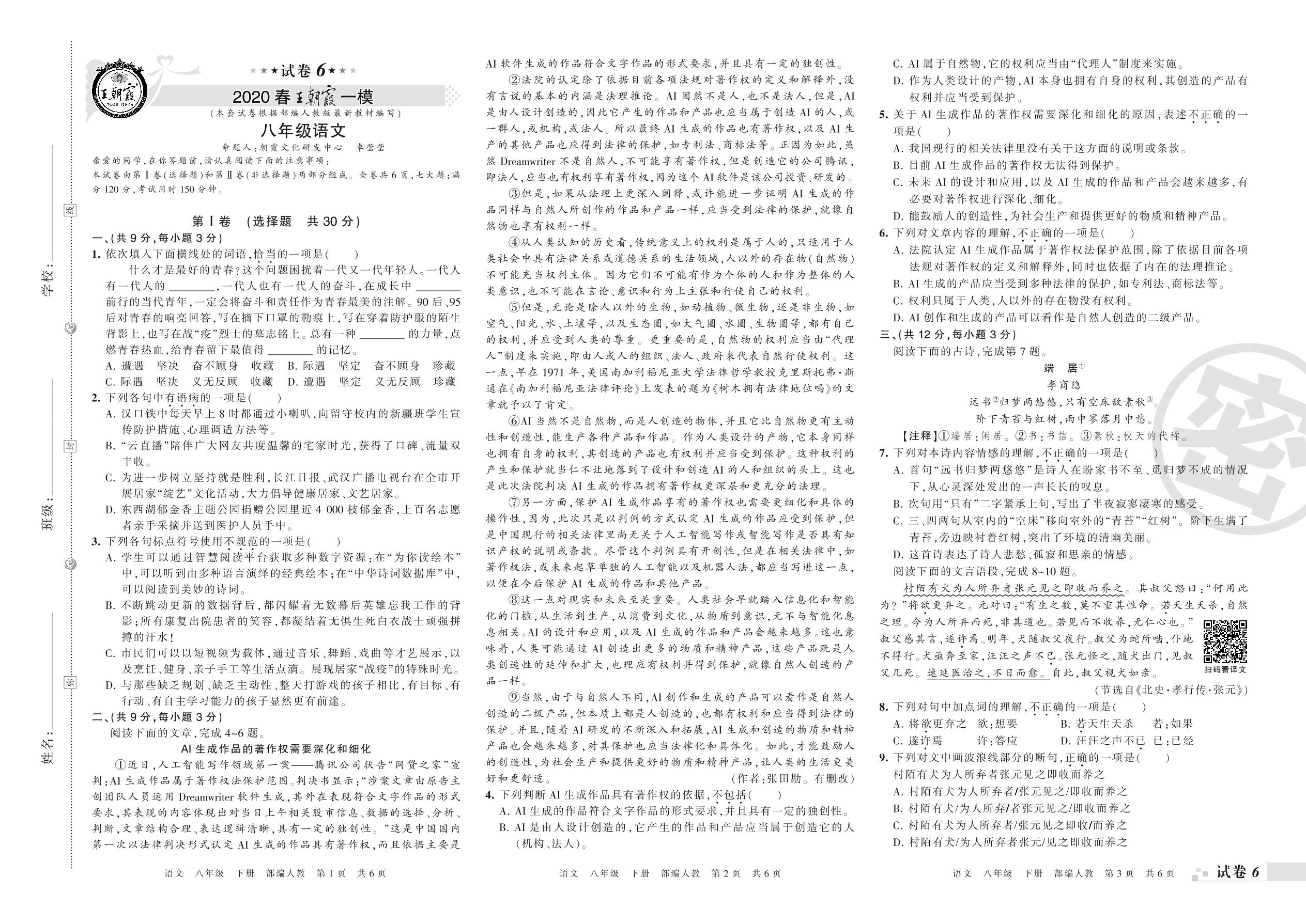 王朝霞期末模拟卷八年级下册语文(人教版)_R21080221047【6】