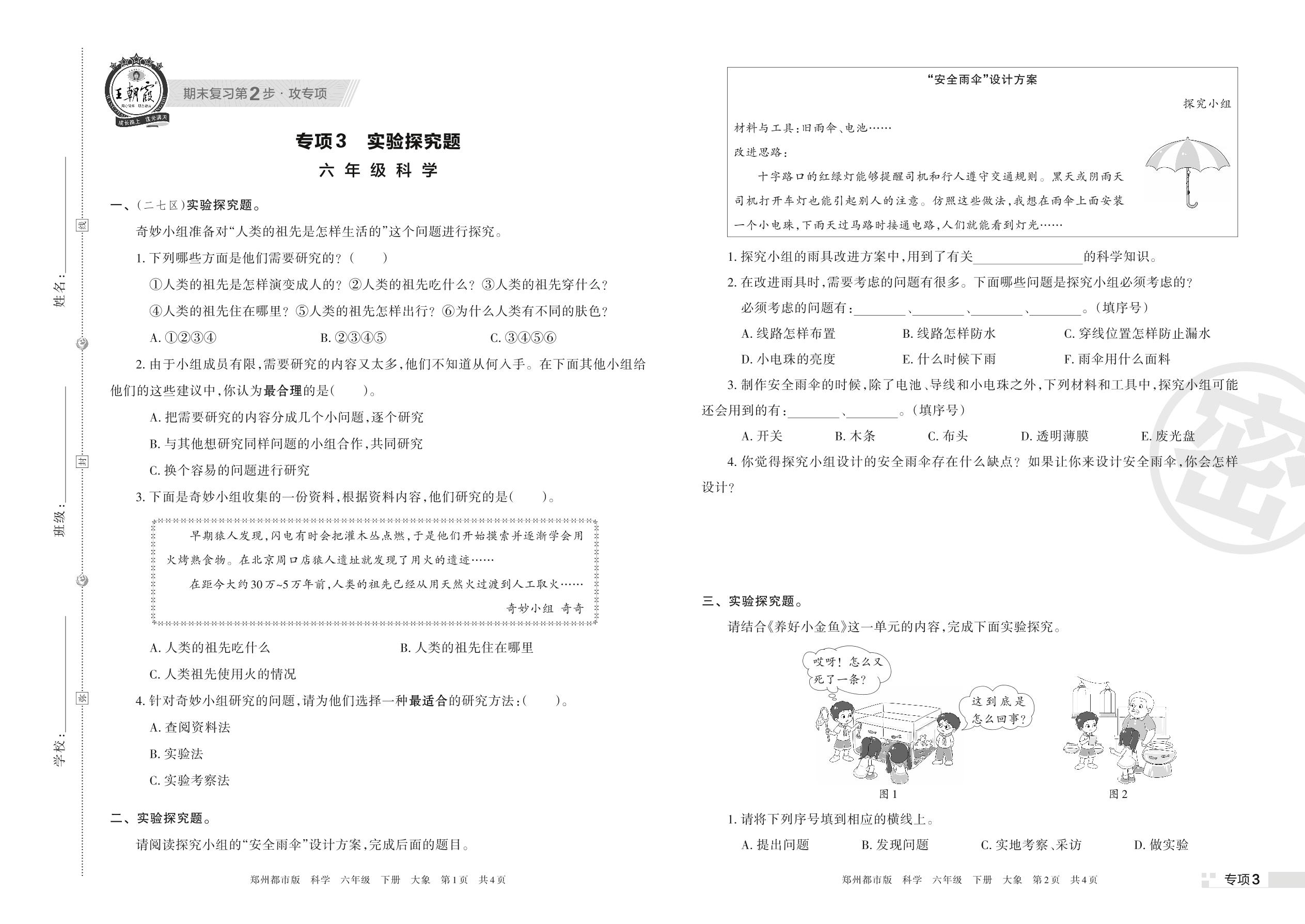 王朝霞期末专项卷——实验探究题六年级下册科学(大象版)【3】