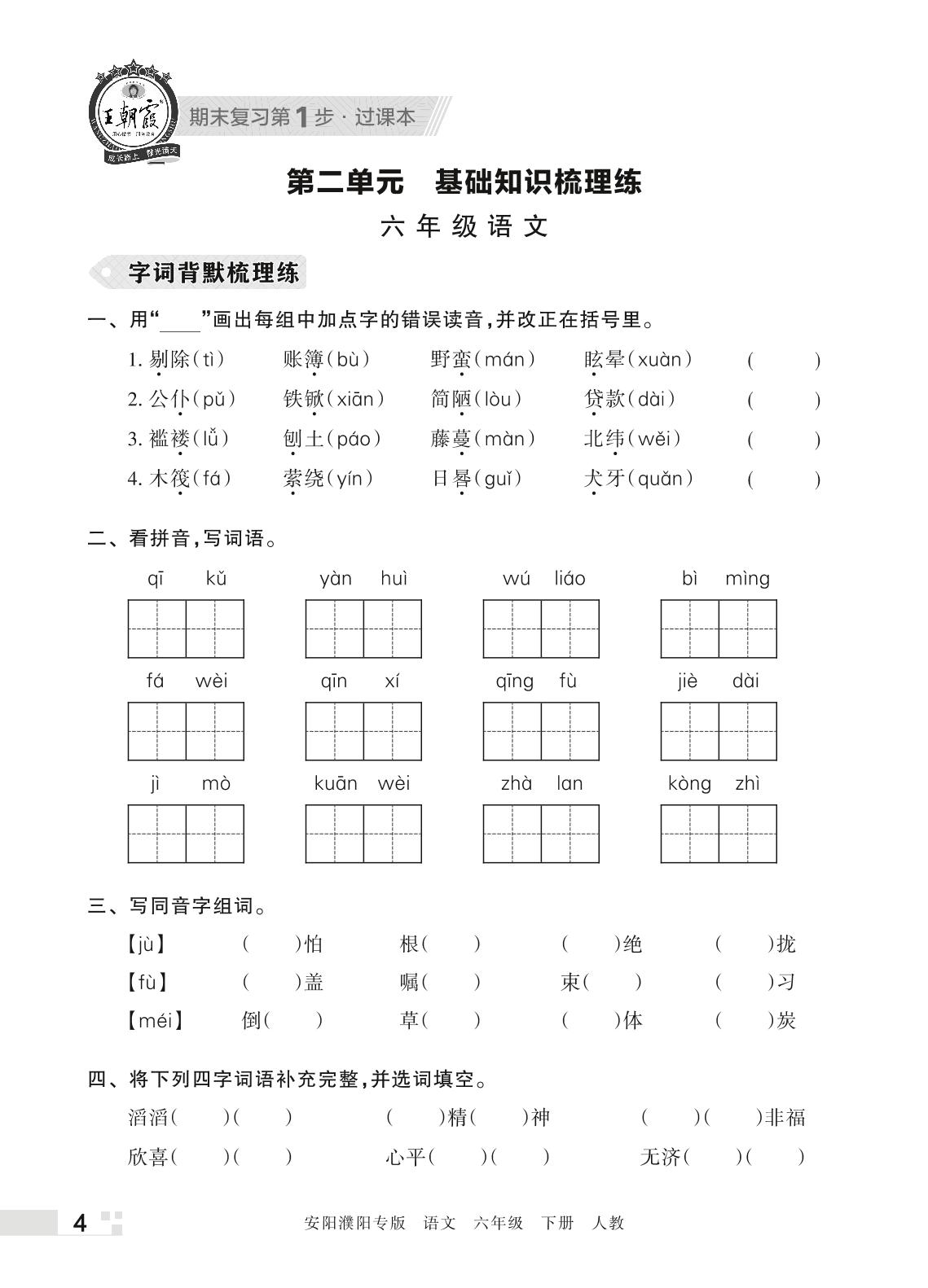 王朝霞期末过课本——第二单元 基础知识梳理练六年级下册语文(人教版)_R220407110613268