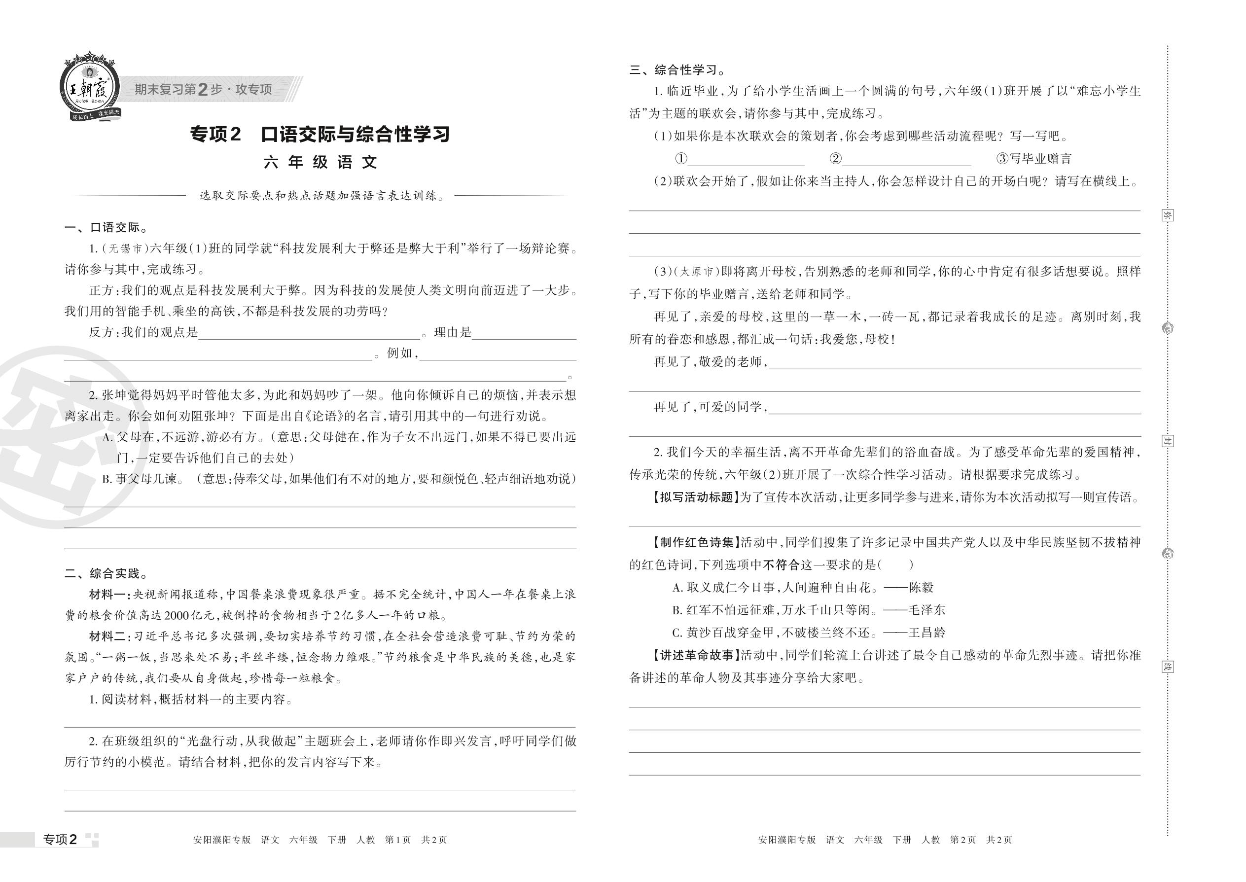 王朝霞期末专项卷——口语交际与综合性学习六年级下册语文(人教版)_R220407110614151【2】