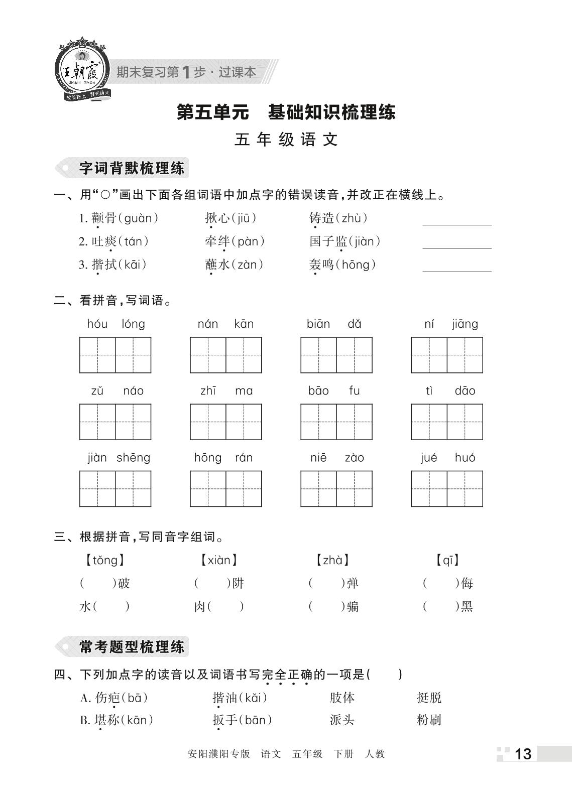 王朝霞期末过课本——第五单元 基础知识梳理练五年级下册语文(人教版)_R220407112001000