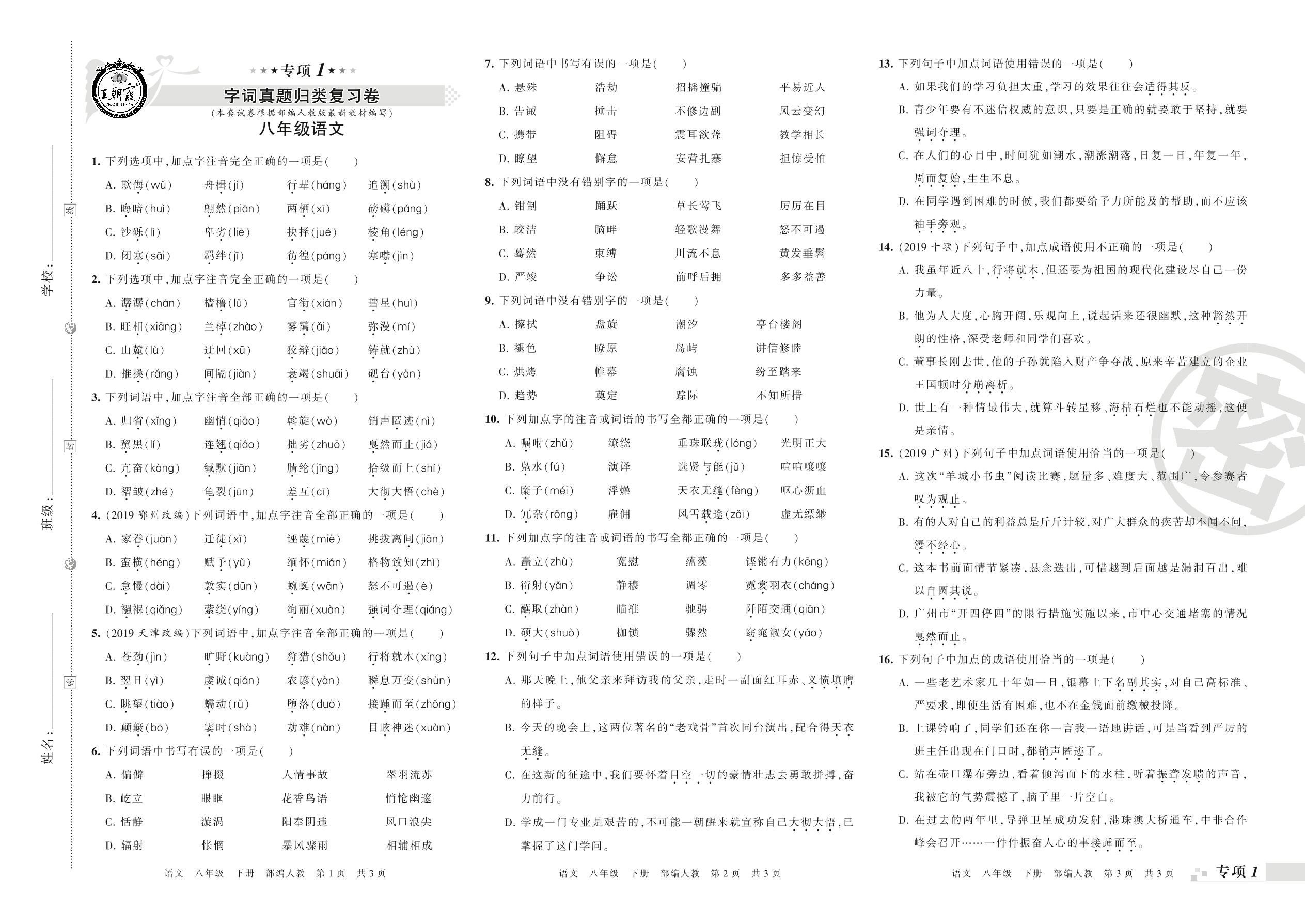 王朝霞期末专项卷——字词、句子真题归类复习卷八年级下册语文(人教版)_R21080221132【0】