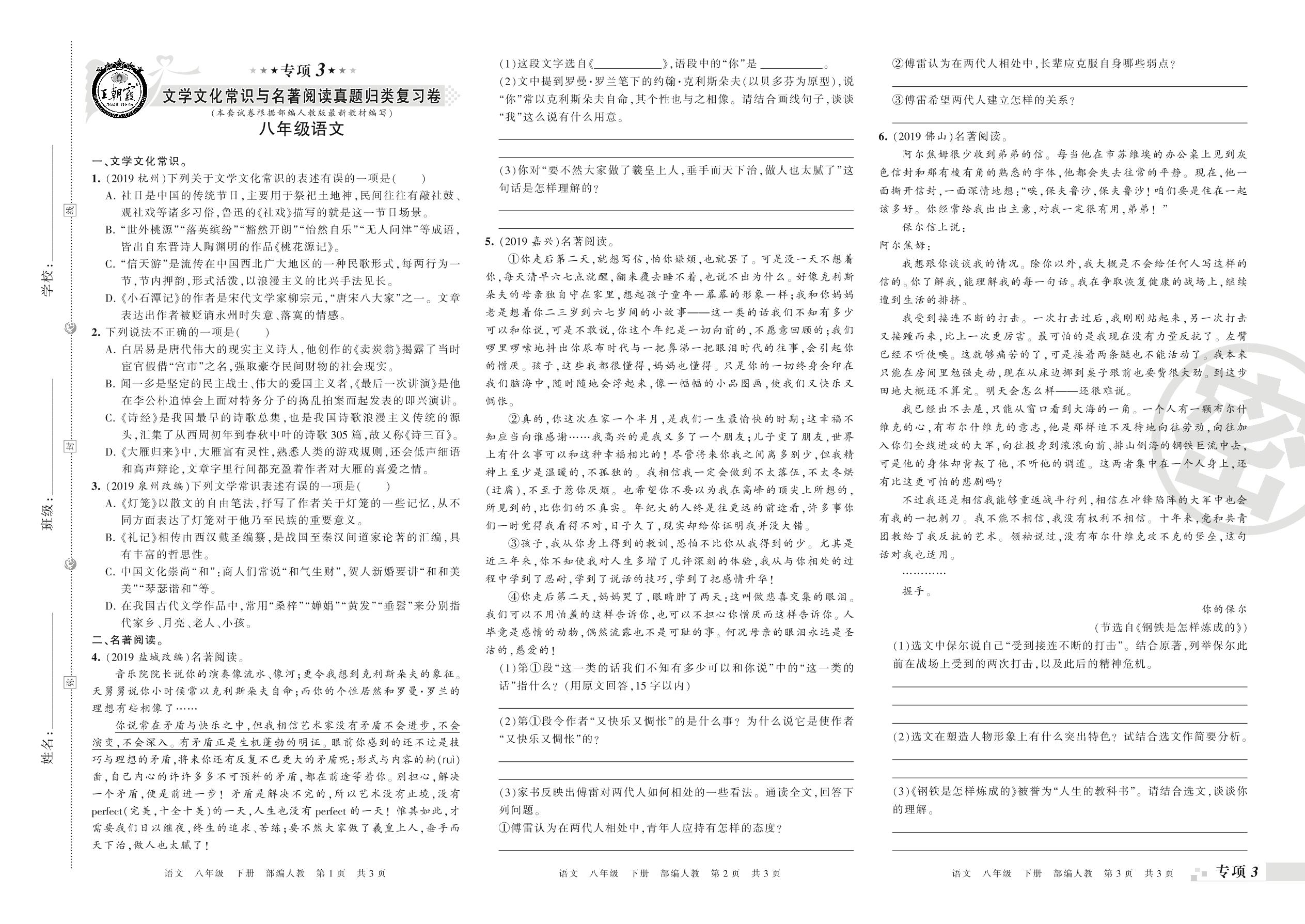王朝霞期末专项卷——文学文化常识与名著阅读、综合性学习真题归类复习卷八年级下册语文(人教版)_R21080221138【0】