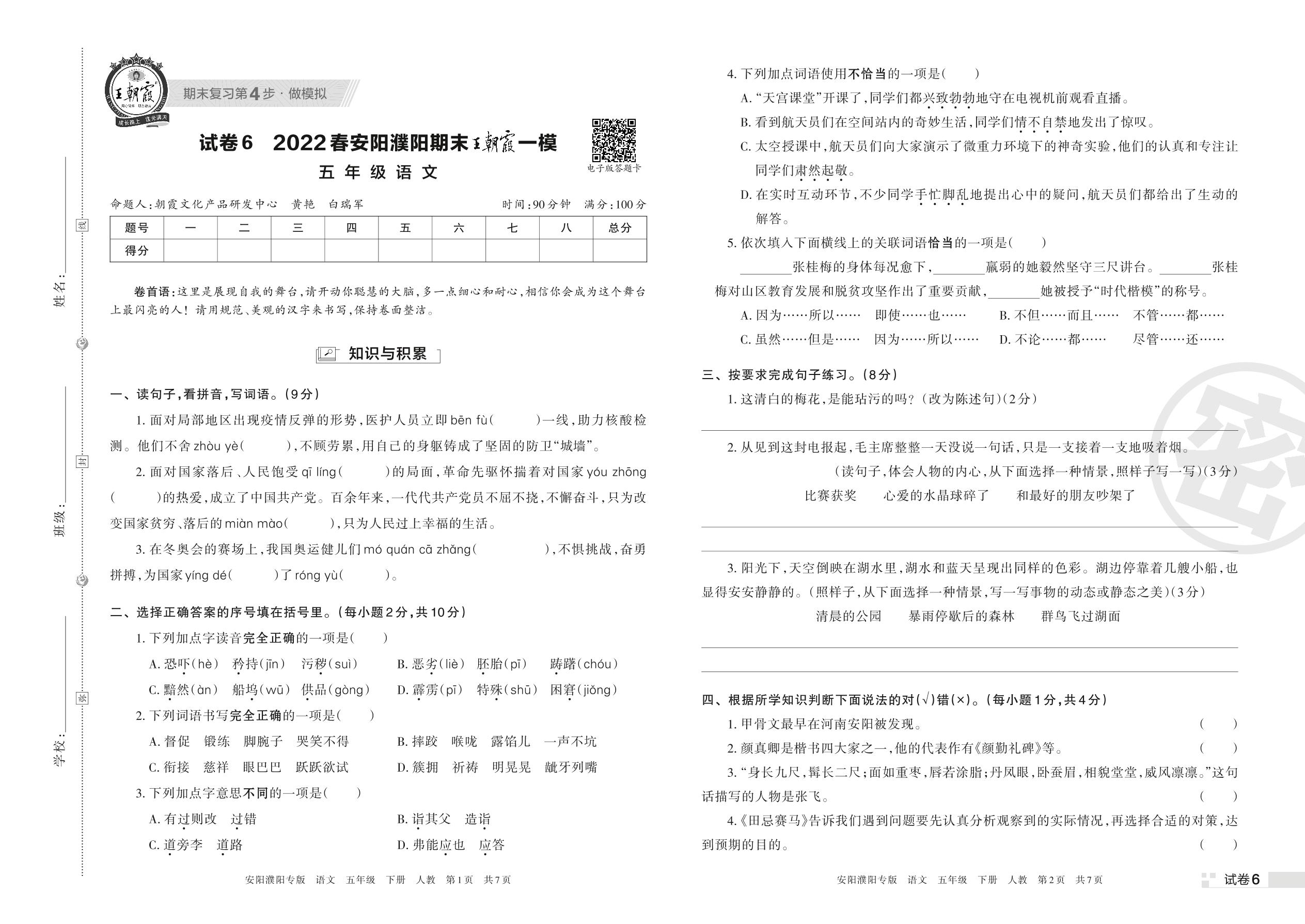 王朝霞期末模拟卷五年级下册语文(人教版)_R220407112003750【6】