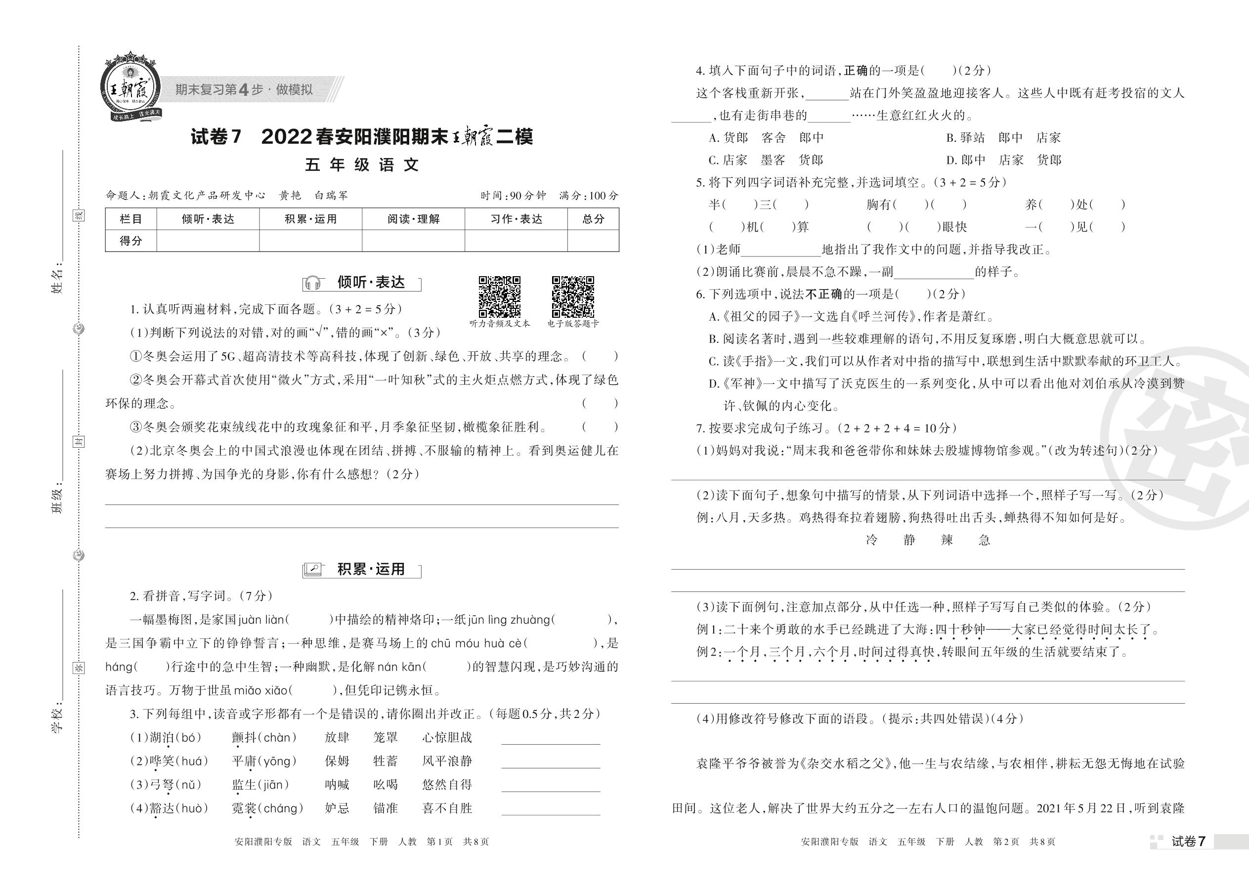 王朝霞期末模拟卷五年级下册语文(人教版)_R220407112004257【7】