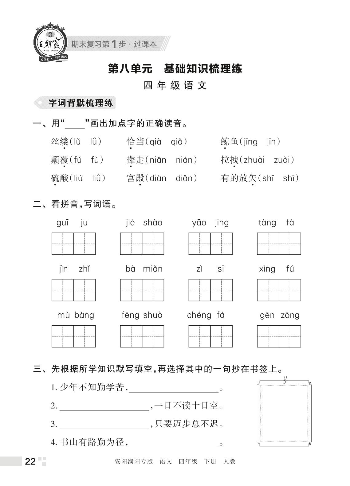 王朝霞期末过课本——第八单元 基础知识梳理练四年级下册语文(人教版)_R220407112551657