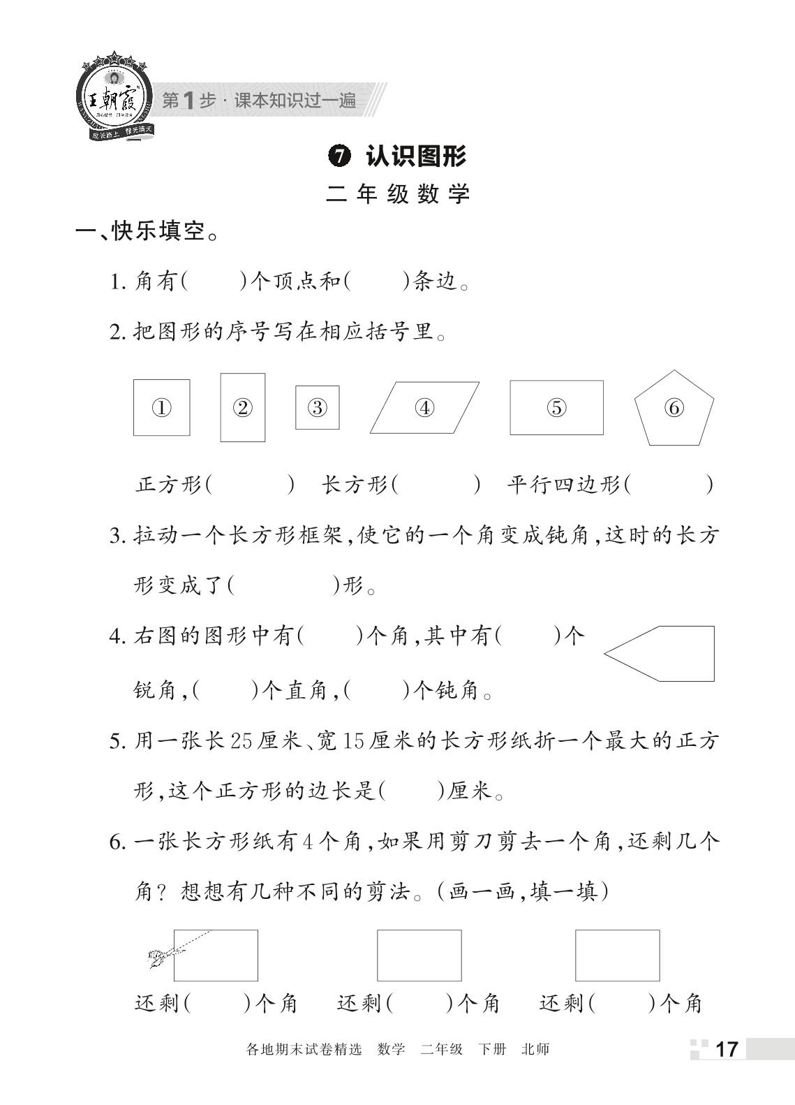 王朝霞期末过课本——7 认识图形二年级下册数学(北师版)